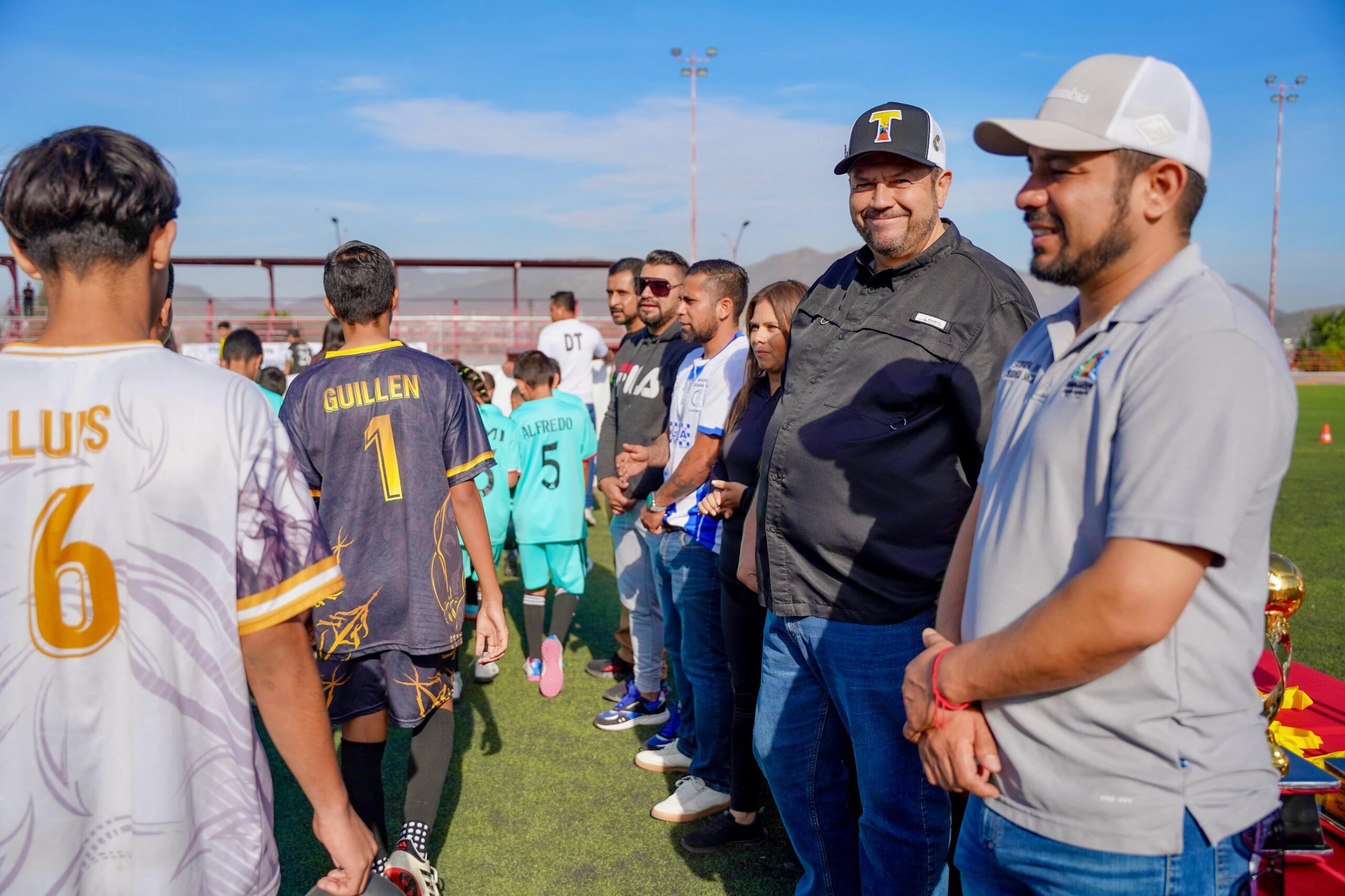 “Estamos trabajando en la construcción de unidades deportivas, en el mantenimiento de otras, porque nuestro compromiso es fomentar el deporte como una herramienta de desarrollo humano y social” señaló el alcalde Tomás Gutiérrez Merino al encabezar la ceremonia de premiación de lo mejor del torneo de la liga municipal de fútbol infantil–juvenil y la inauguración del certamen otoño–invierno 2025, en la cancha de fútbol de la unidad deportiva Eulalio Gutiérrez.