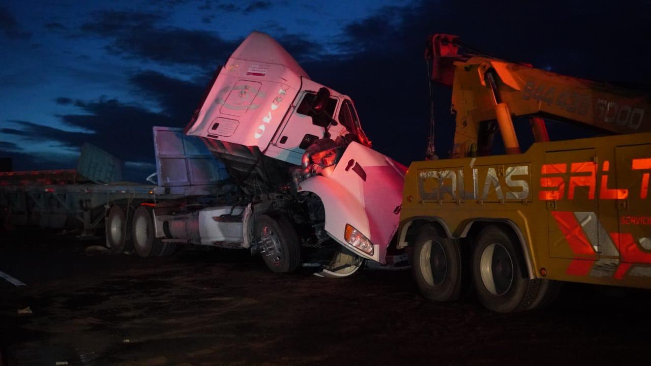 Un aparatoso accidente se registró la noche de este viernes en el caracol que conecta la autopista Saltillo-Monterrey con la carretera libre, a la altura del ejido Ojo Caliente, en el municipio de Ramos Arizpe.