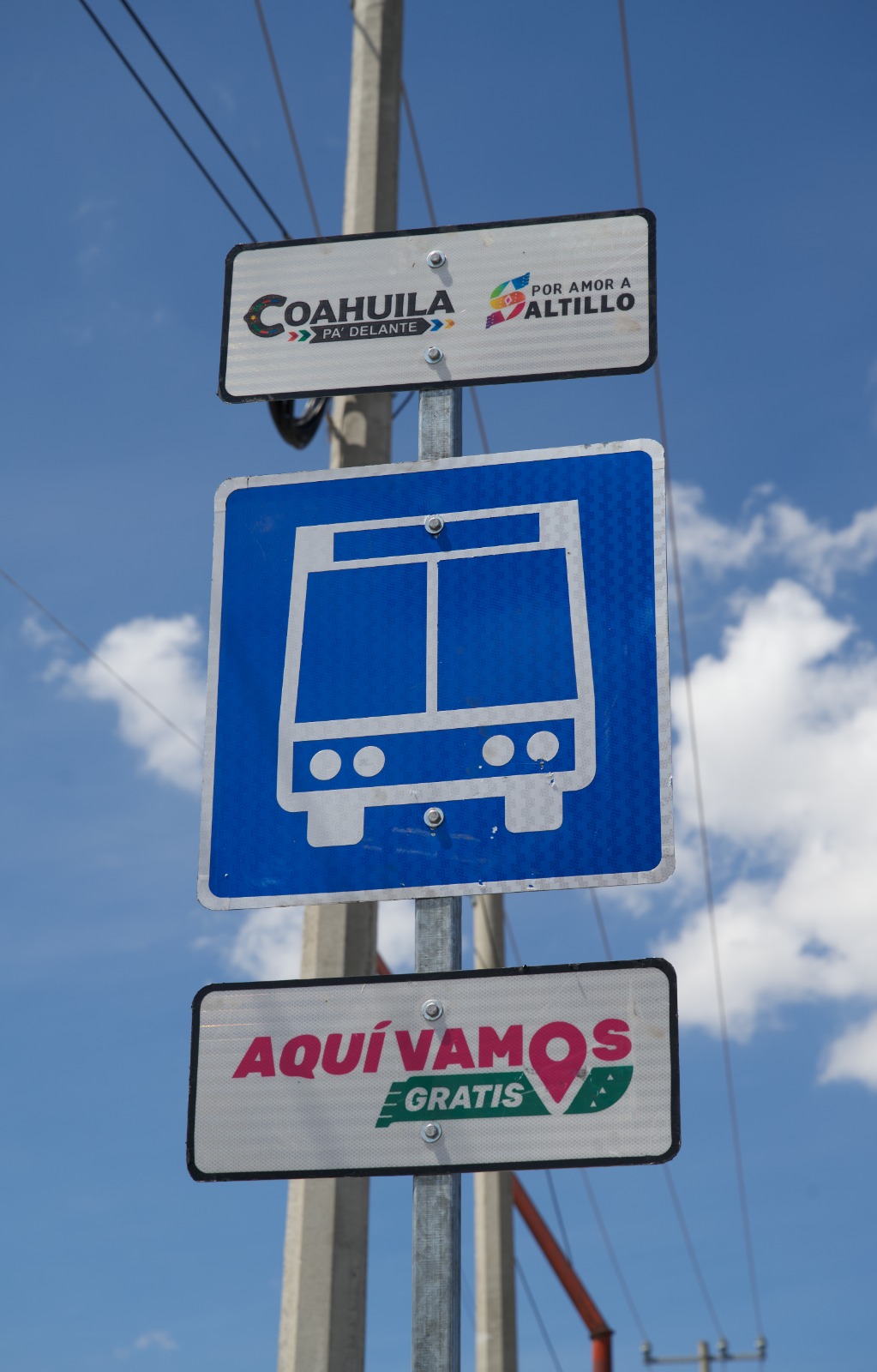 El Gobierno Municipal de Saltillo informó que, como parte de la implementación del programa “Aquí Vamos Gratis”, se lleva a cabo la instalación de señalética en las diferentes paradas y corredores del transporte público.