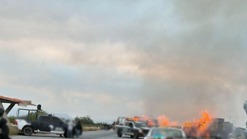 La Guardia Nacional informó sobre un cierre total en el kilómetro 027+000 de la carretera Zacatecas-Durango, en el tramo Zacatecas-Víctor Rosales, debido al incendio de un vehículo. También se registraron bloqueos en Jerez, Enrique Estrada y en la carretera federal 45, a la altura de Fresnillo y en los límites con Durango, así como en la carretera 49 y en el tramo hacia Aguascalientes.