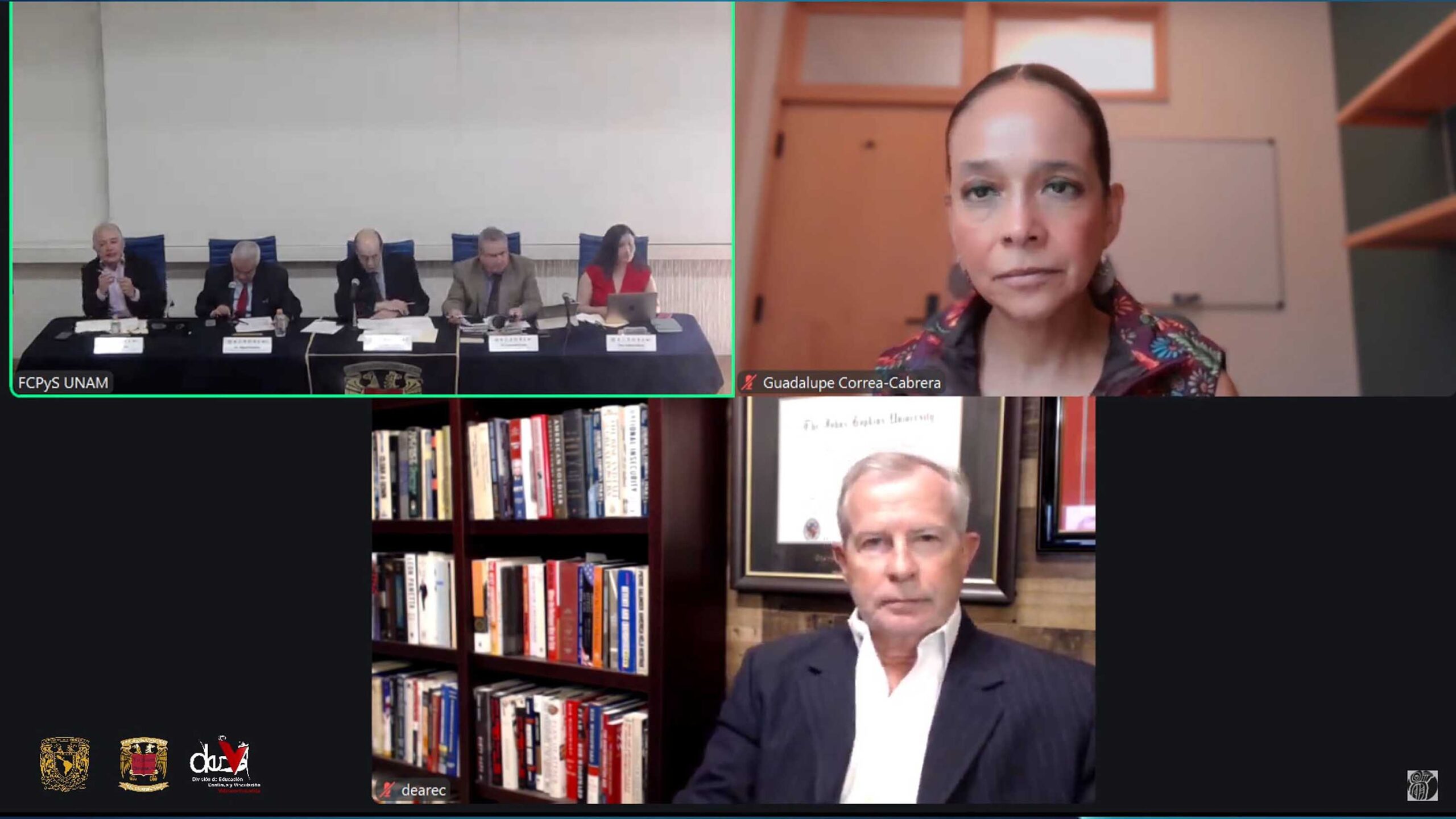 Durante la sesión dedicada al tema “Riesgos y amenazas para la Seguridad de América del Norte”, Craig A. Deare, profesor del College of International Security Affairs, National Defense University, recordó que en las negociaciones con EUA es importante considerar la historia compleja de varias intervenciones al territorio por parte de Estados Unidos, las cuales han marcado la diplomacia entre las dos naciones, especialmente de 1991 a la fecha.