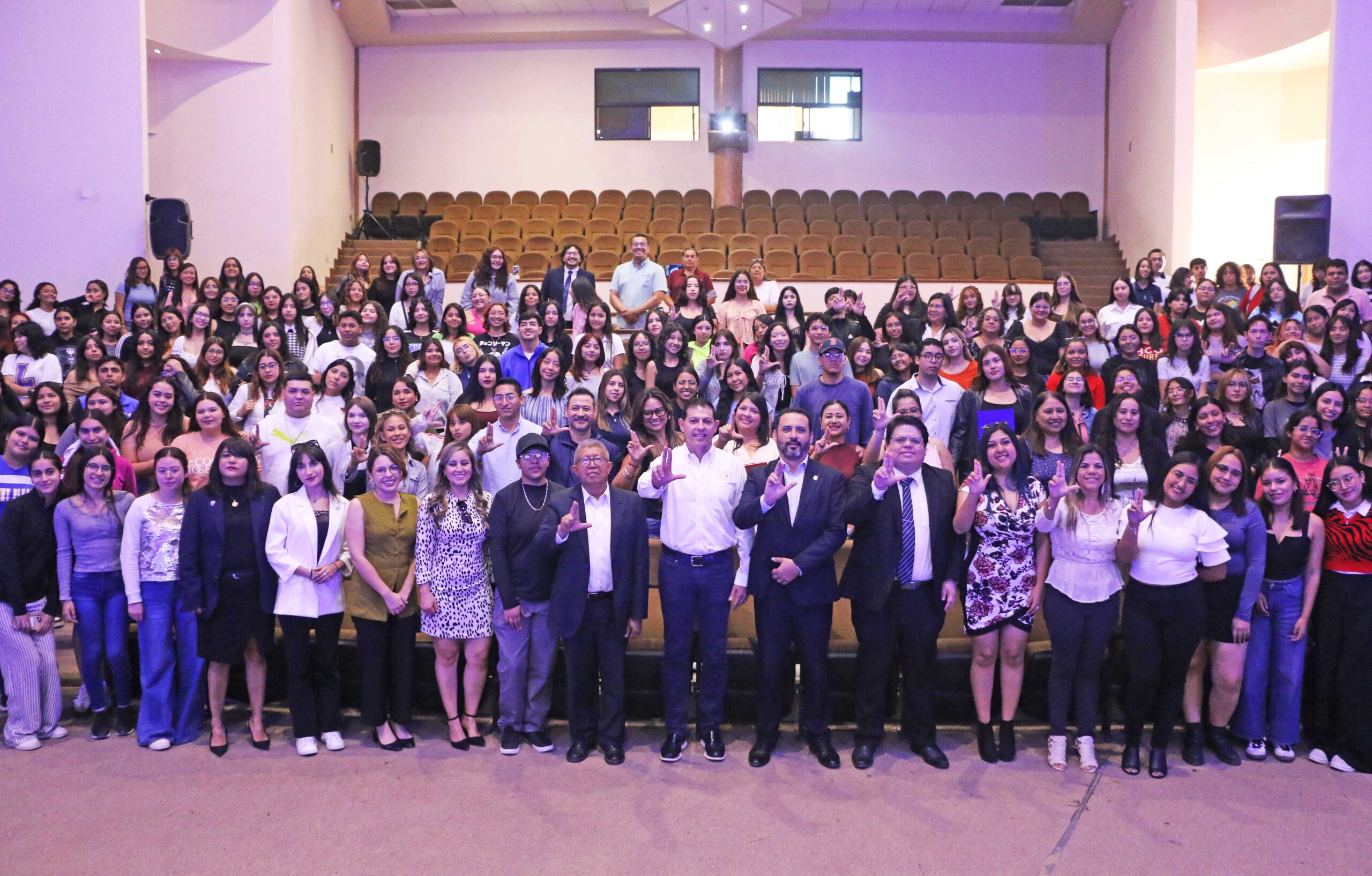En el Aula Magna “José María Fraustro Siller”, se contó con la presencia del rector de la máxima casa de estudios, Octavio Pimentel Martínez; el secretario general de la Coordinación de Unidad Sureste, Víctor Cobos Martínez; el director del plantel, César Arnulfo de León Alvarado, así como comunidad docente y estudiantil del plantel.
