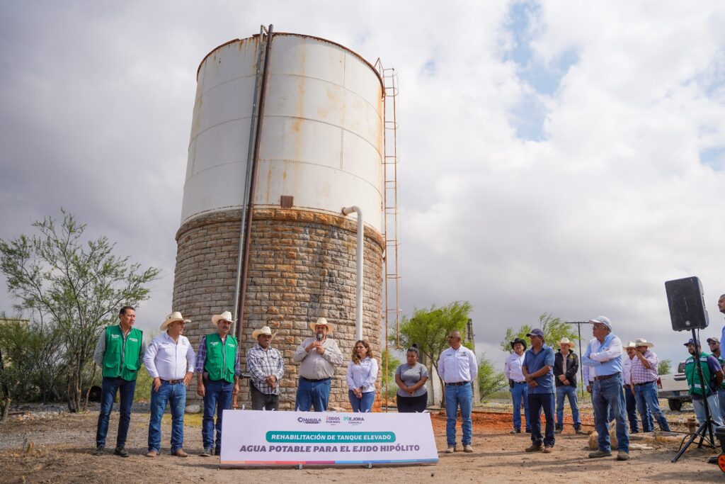 Con una inversión cercana a los 500 mil pesos, el Gobierno Municipal, con el apoyo del Gobierno Estatal, entregó la rehabilitación del tanque de almacenamiento de agua y la reparación del pozo en el ejido Hipólito, acción que beneficiará directamente a más de 300 familias de siete comunidades rurales del municipio.