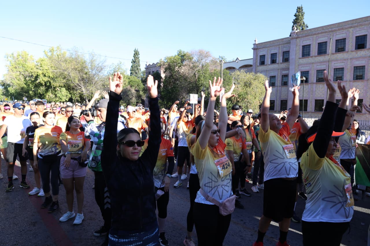 Luly López Naranjo, presidenta honoraria del DIF Saltillo, agradeció la participación de las 450 corredoras y corredores que se sumaron a esta carrera y a su vez contribuirán para apoyar a niñas y niños que requieren una operación de corazón abierto.