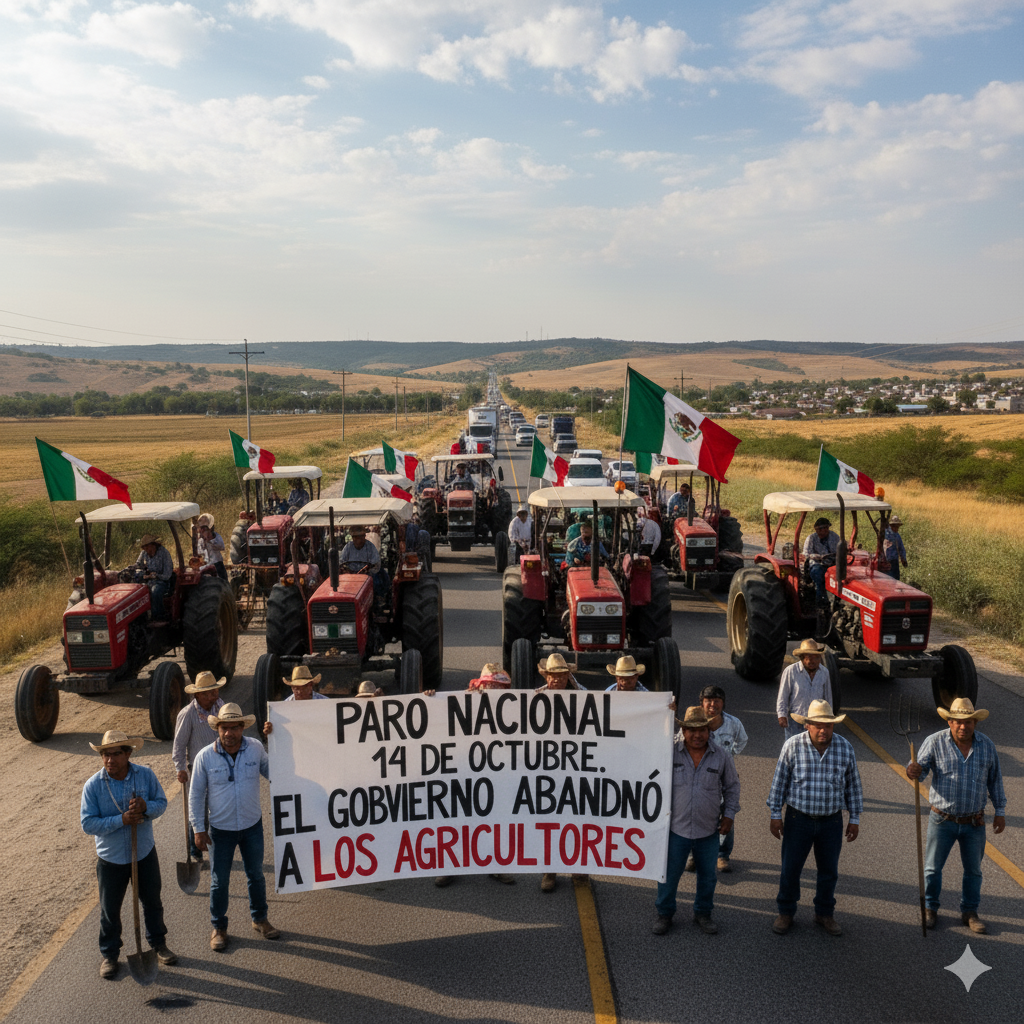 Ciudad de México.- Agricultores de al menos 20 entidades federativas realizaron este martes 14 de octubre un paro nacional con bloqueos en carreteras y manifestaciones frente a oficinas gubernamentales, para denunciar la crisis que atraviesa el campo mexicano.