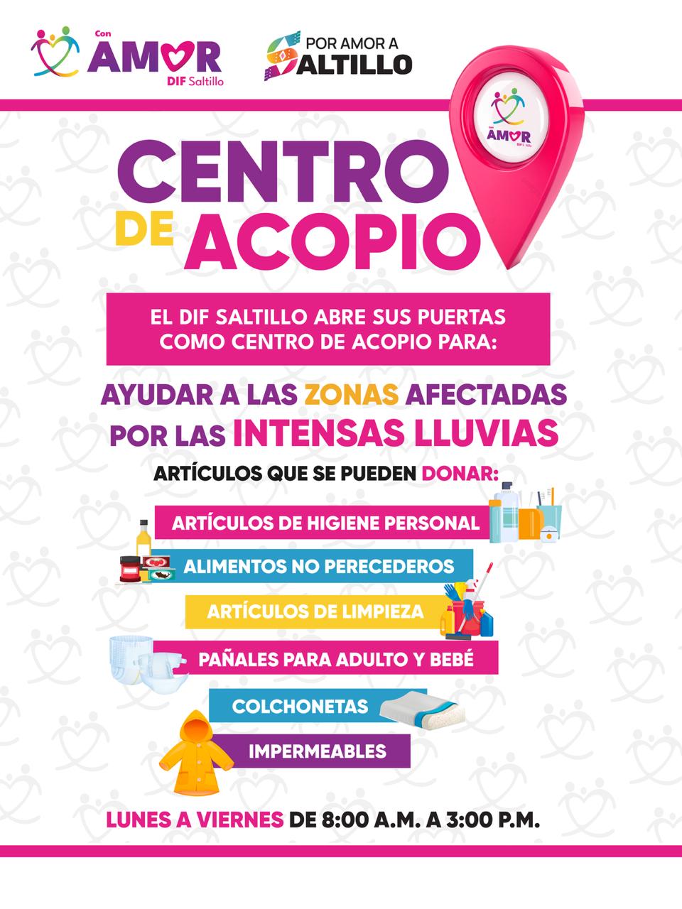 El Gobierno Municipal, a través del DIF Saltillo, abrió un centro de acopio en sus instalaciones a fin de ayudar a las zonas afectadas por las intensas lluvias en el estado de Veracruz.