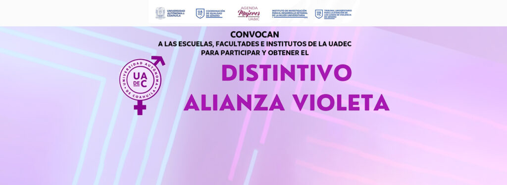 La Universidad Autónoma de Coahuila a través de la Coordinación de Igualdad de Género, el Instituto de Investigación para el Desarrollo Integral de la Mujer Universitaria, el Tribunal Universitario para la Atención de los Casos de Violencia de Género y la Agenda Mujeres, convoca a sus escuelas, facultades e institutos a participar para obtener el “Distintivo Alianza Violeta”.