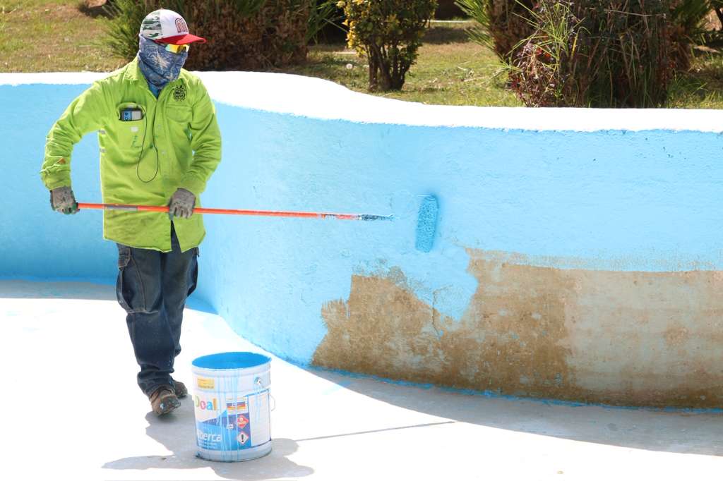 Personal de la Dirección de Medio Ambiente y Desarrollo Sustentable realizan la limpieza profunda, la eliminación de sedimentos acumulados, basura, y residuos orgánicos, así como el recubrimiento con aplicación de pintura para crear una superficie resistente.