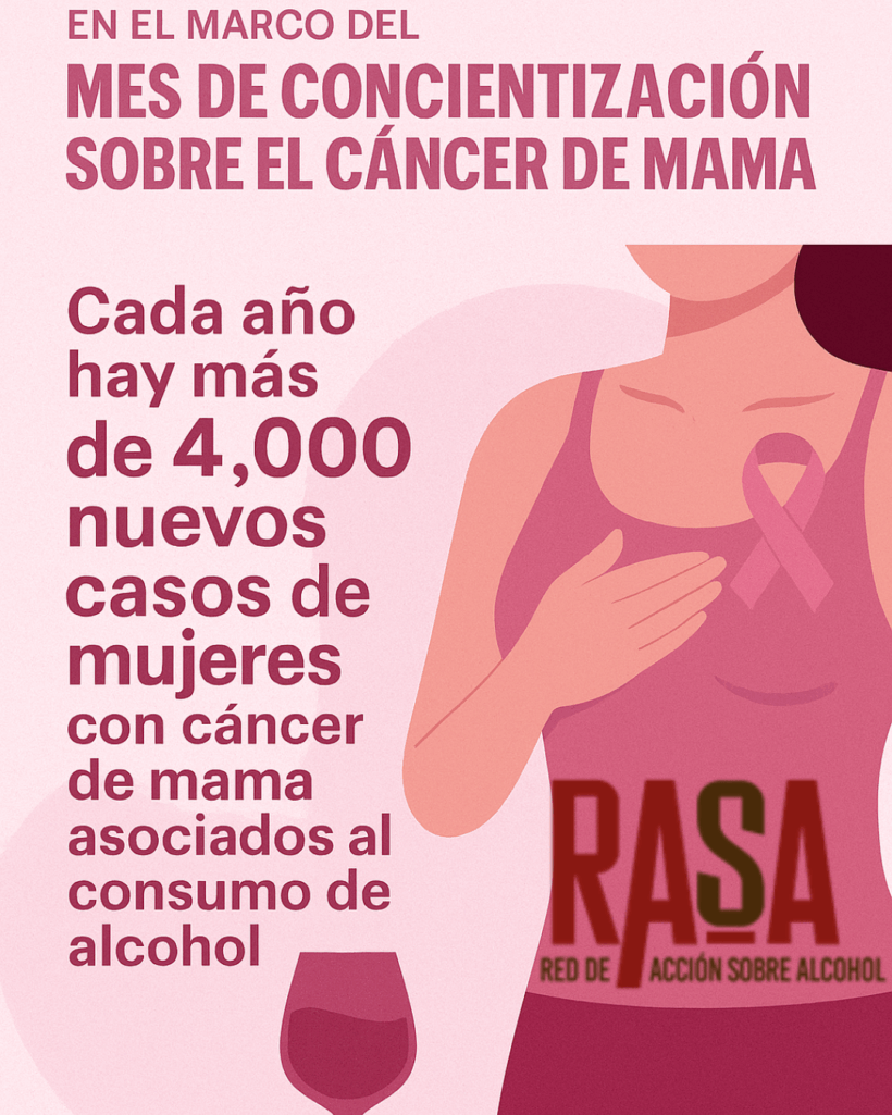 Al respecto, Luis Alonso Robledo, vocero de la RASA declaró que “el consumo de alcohol no es un hábito inofensivo ya que no existe un nivel seguro de consumo. Las mujeres que beben, tienen 30% más de probabilidad de desarrollar cáncer de mama que aquellas que no lo hacen. Esta es una realidad que durante años se ha mantenido en silencio, opacada por la normalización cultural del consumo de alcohol y por una industria del alcohol que se esfuerza por asociarlo con bienestar, éxito o celebración.”