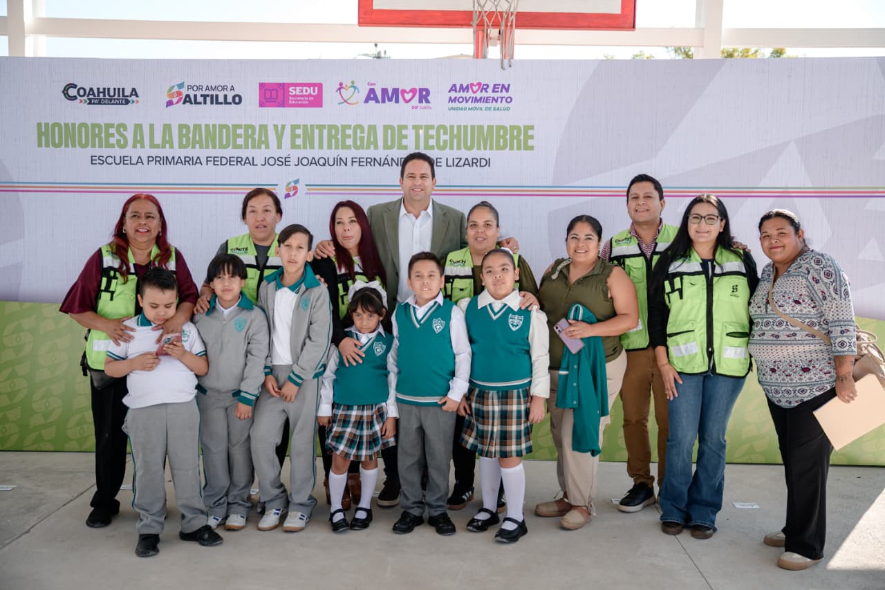 El alcalde de Saltillo encabeza honores a la bandera y entrega techumbre en la primaria, José Joaquín Fernández de Lizardi