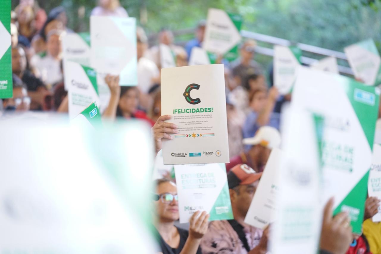 Con el objetivo de brindar certeza jurídica y fortalecer el patrimonio de las familias, el gobernador Manolo Jiménez a través de Mejora, CERTTURC y la Secretaría de la Vivienda y Ordenamiento Territorial han realizado la entrega de más de 2000 escrituras en todo Coahuila.