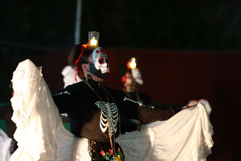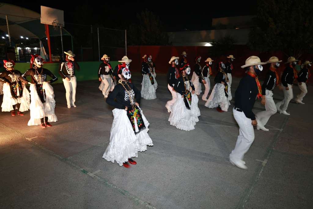 Teniendo como sede el Skate Park Saltillo 2000, intervenida con el programa Activa tu Parque, las y los bailarines presentaron diferentes números musicales, caracterizados de catrinas y catrines.