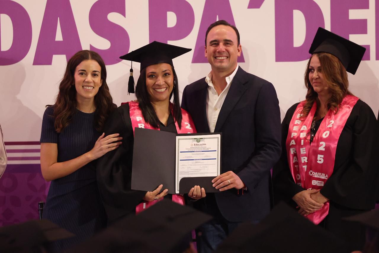 “Y si hay familias sanas y familias fuertes, tenemos una comunidad fuerte. Y si tenemos comunidades fuertes, tenemos municipios y un Estado fuerte y echado para adelante. Por eso, a nombre del gobierno del Estado, a nombre de los municipios, al nombre de las coahuilenses, muchas felicidades a todas las mujeres que hoy se gradúan”, manifestó.