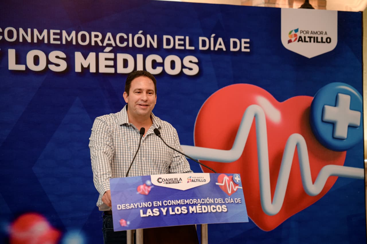 Al conmemorar el Día de las y los Médicos, el alcalde de la ciudad, Javier Díaz González, agradeció el trabajo de los especialistas de la salud que trabajan en los consultorios del Gobierno Municipal de Saltillo, en lo que va del año 2025 se han brindado 50 mil revisiones médicas a los funcionarios públicos y a sus familias.