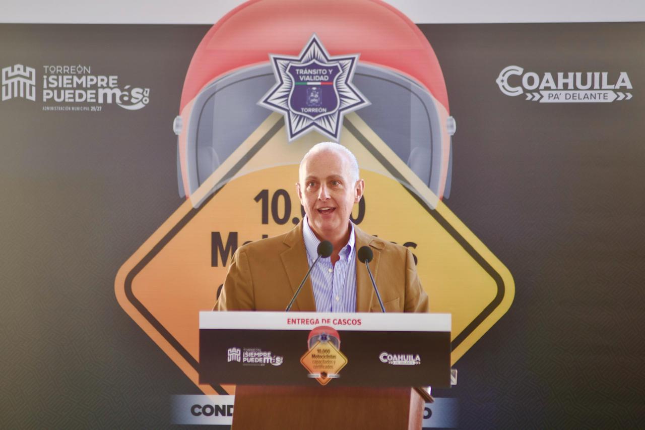 Román Cepeda entrega 400 cascos a motociclistas para fortalecer la seguridad vial de Torreón