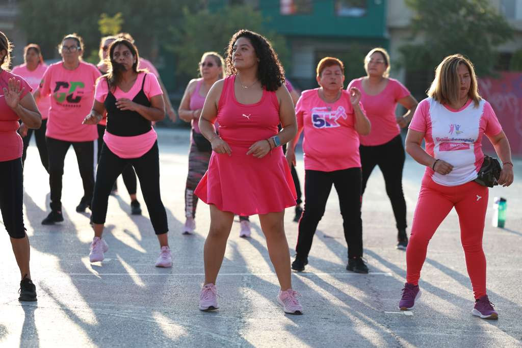 Mujeres saltillenses se sumaron al Bailotón Rosa que se llevó a cabo al poniente de la ciudad con el objetivo de concientizar sobre la prevención del cáncer de mama.