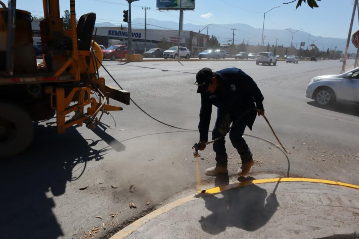 Con el impulso del gobernador Manolo Jiménez Salinas, brigadas del programa “Aquí Andamos” trabajaron en el camellón central del bulevar José María Rodríguez, a fin de delimitar con claridad las zonas de circulación vehicular y los espacios de separación entre sentidos opuestos de circulación.
