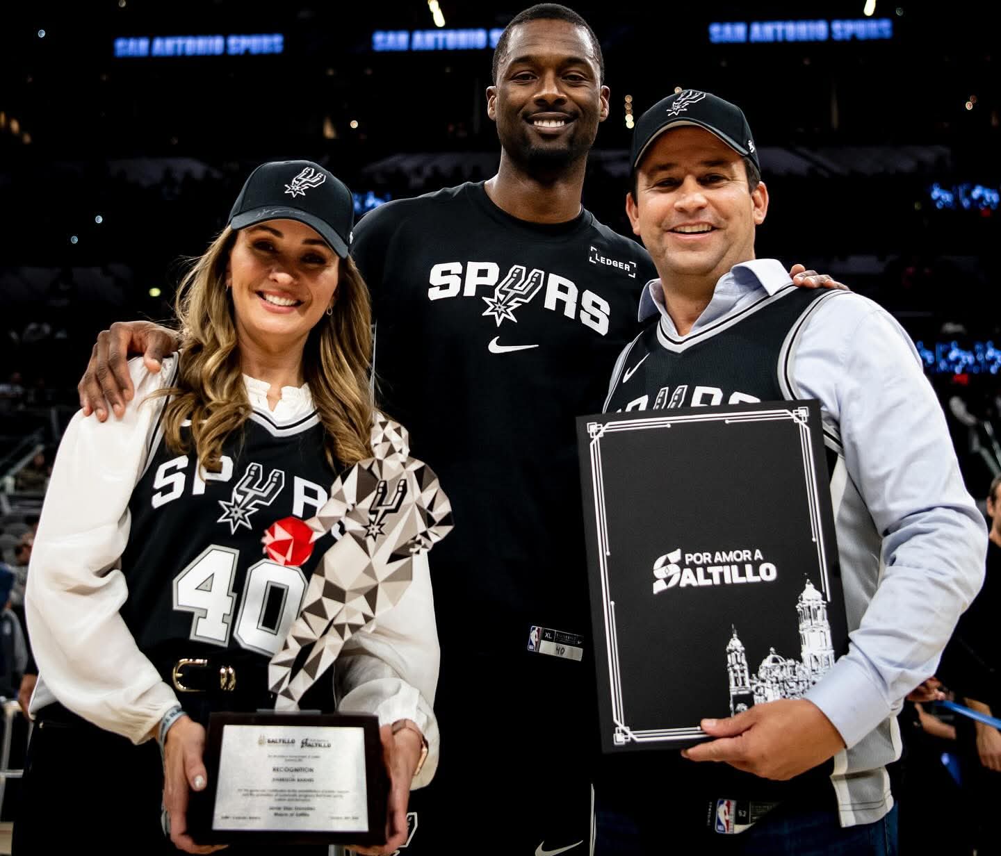 Durante su gira de trabajo por San Antonio Texas, Javier Díaz, acompañado por su esposa Luly López Naranjo, entregó el reconocimiento al reconocido basquetbolista durante el medio tiempo del partido entre Spurs y Miami Heat.
