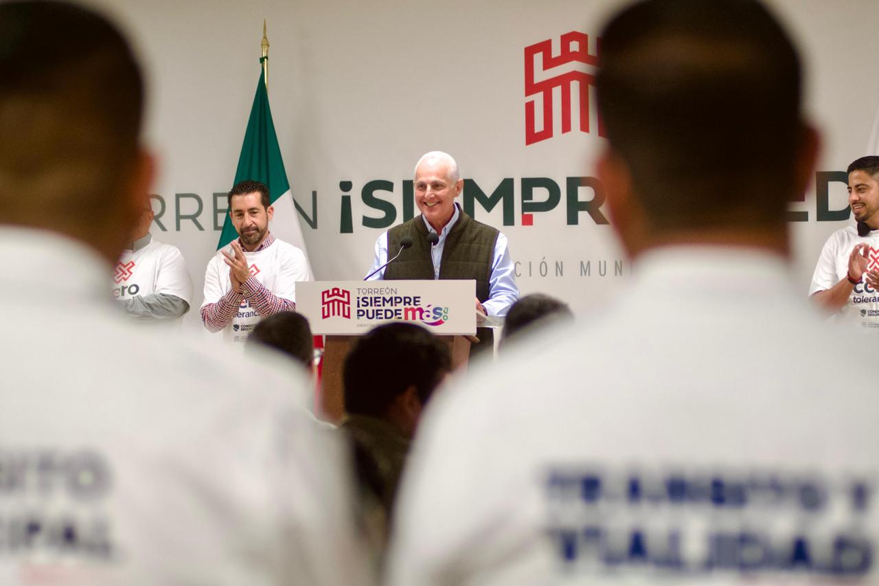 Torreón.- Este viernes, el alcalde Román Alberto Cepeda González arrancó el programa Cero Tolerancia que tiene como objetivo fomentar una cultura vial responsable, promoviendo el respeto a las normas para garantizar la seguridad de todos los ciudadanos.
