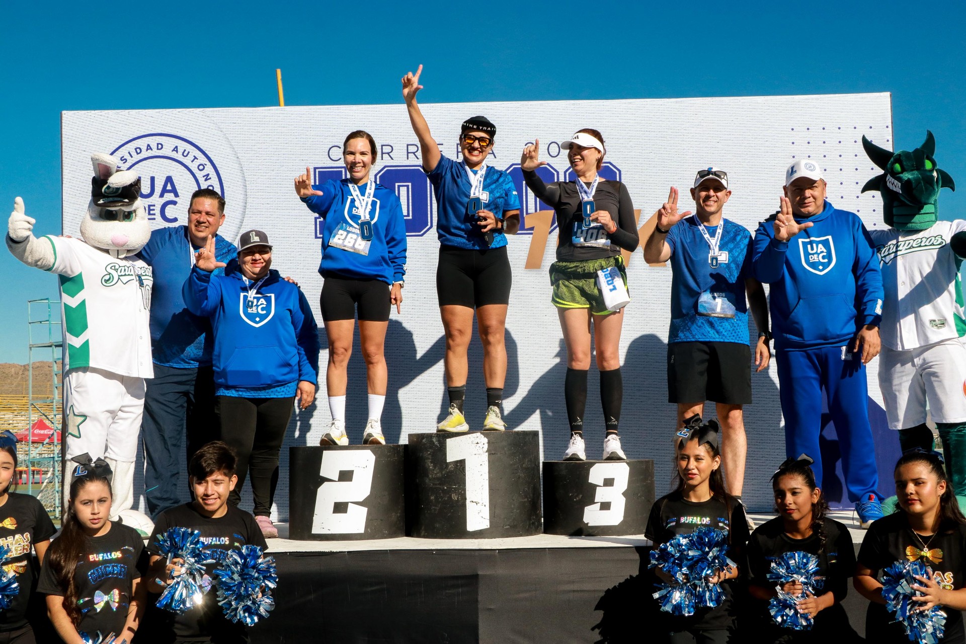 A la Unidad Deportiva Universitaria asistieron las y los corredores, en donde estuvieron el rector de la máxima casa de estudios, Octavio Pimentel Martínez, quien dio el cornetazo de salida en compañía de la coordinadora de Unidad Sureste, Eva Kerena Hernández Martínez y el coordinador de Deportes de la UAdeC, Robertony García Perea.
