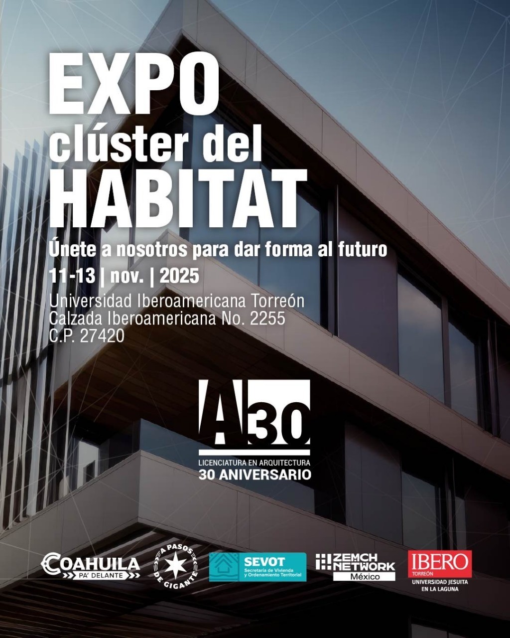 El Gobierno del Estado de Coahuila, a través de la Secretaría de Vivienda y Ordenamiento Territorial (SEVOT), impulsará la participación de la comunidad académica, estudiantil y profesional en el Expo Clúster del Hábitat / ZEMCH 2025, un encuentro internacional que se llevará a cabo del 11 al 13 de noviembre en la Universidad Iberoamericana Torreón, con la participación de más de 40 países.