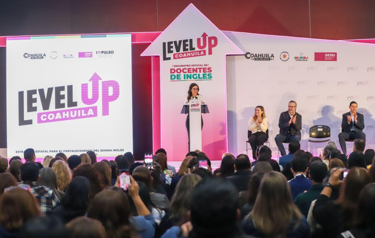 Como parte del programa integral Level Up, el Gobierno del Estado, a través de la Oficina Inspira Coahuila, y en coordinación con la Secretaría de Educación, llevaron a cabo el Encuentro Estatal de Docentes de Inglés, en el cual participaron más de 500 maestras y maestros de todas las regiones y de los diferentes niveles educativos, desde primaria, hasta universidad.