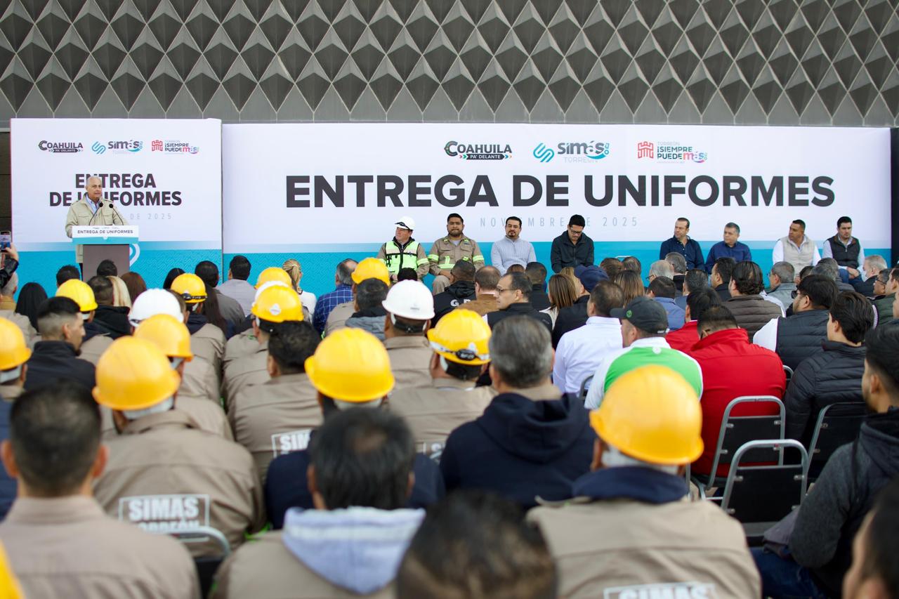 Román Cepeda González entrega uniformes al personal del SIMAS Torreón