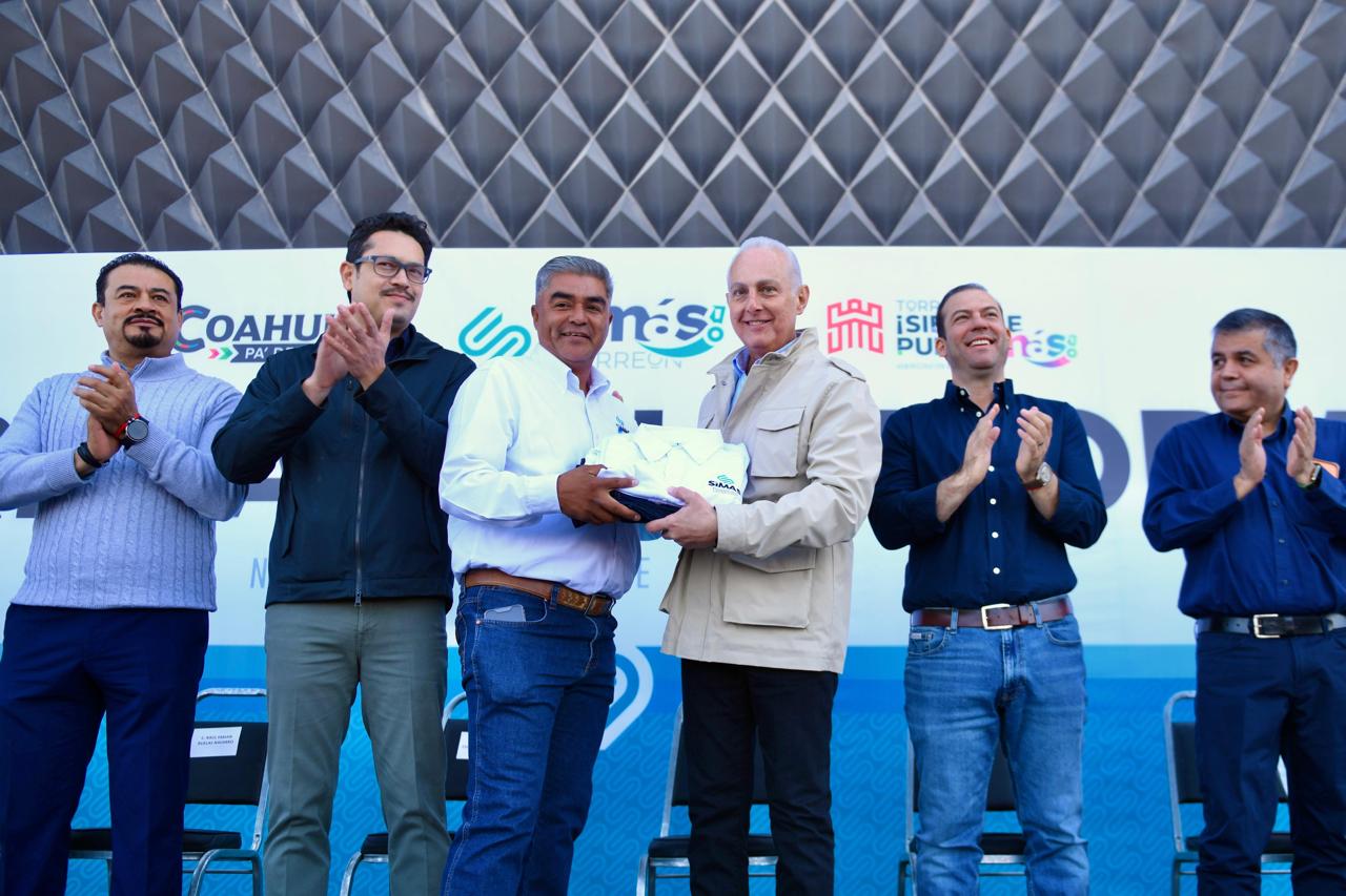 Román Cepeda González entrega uniformes al personal del SIMAS Torreón