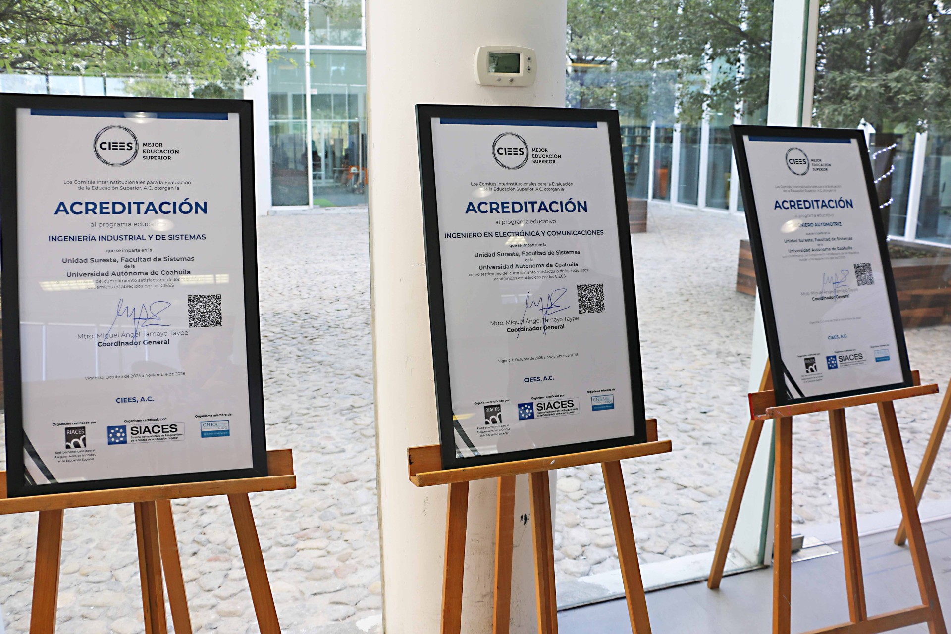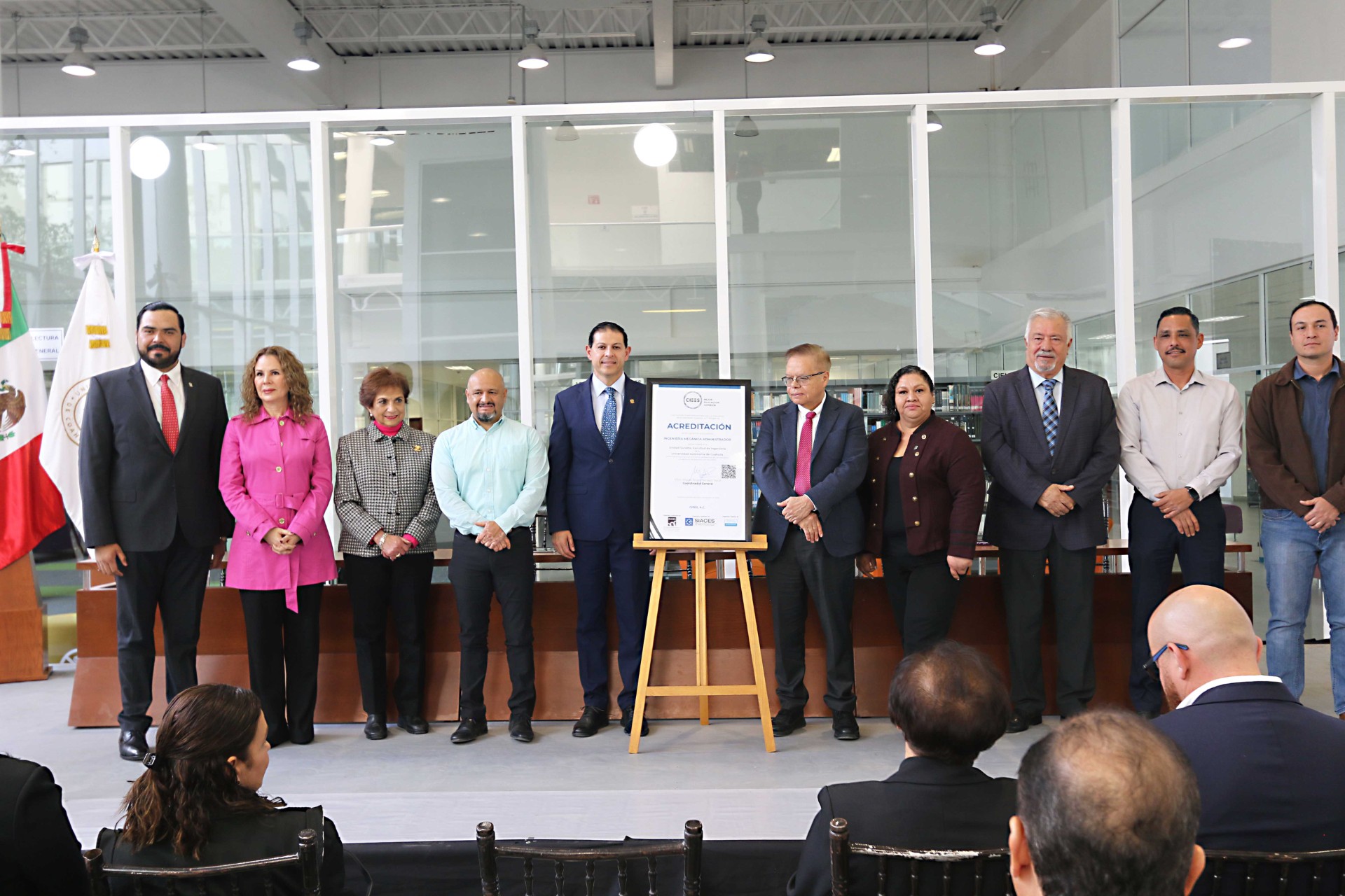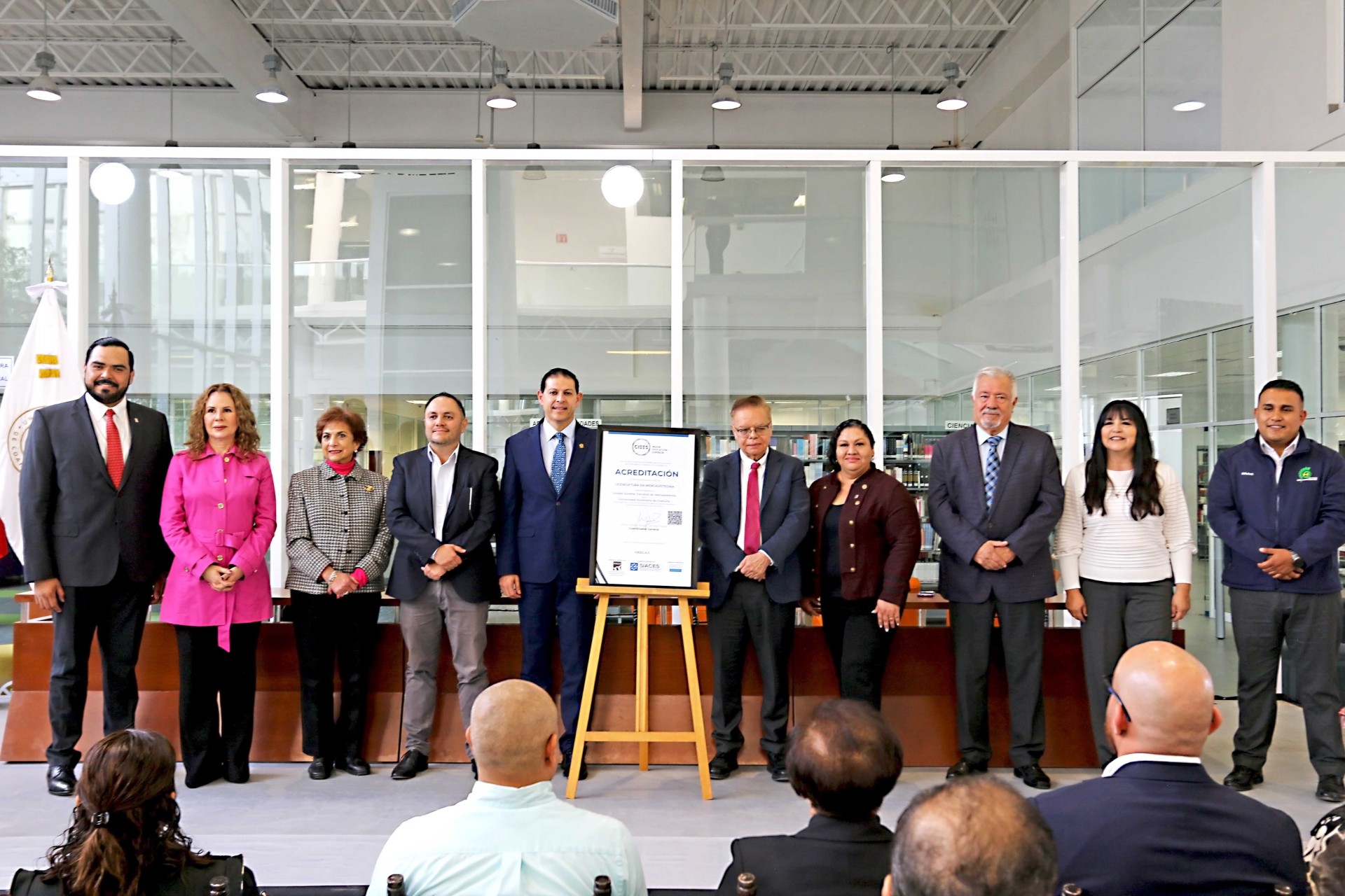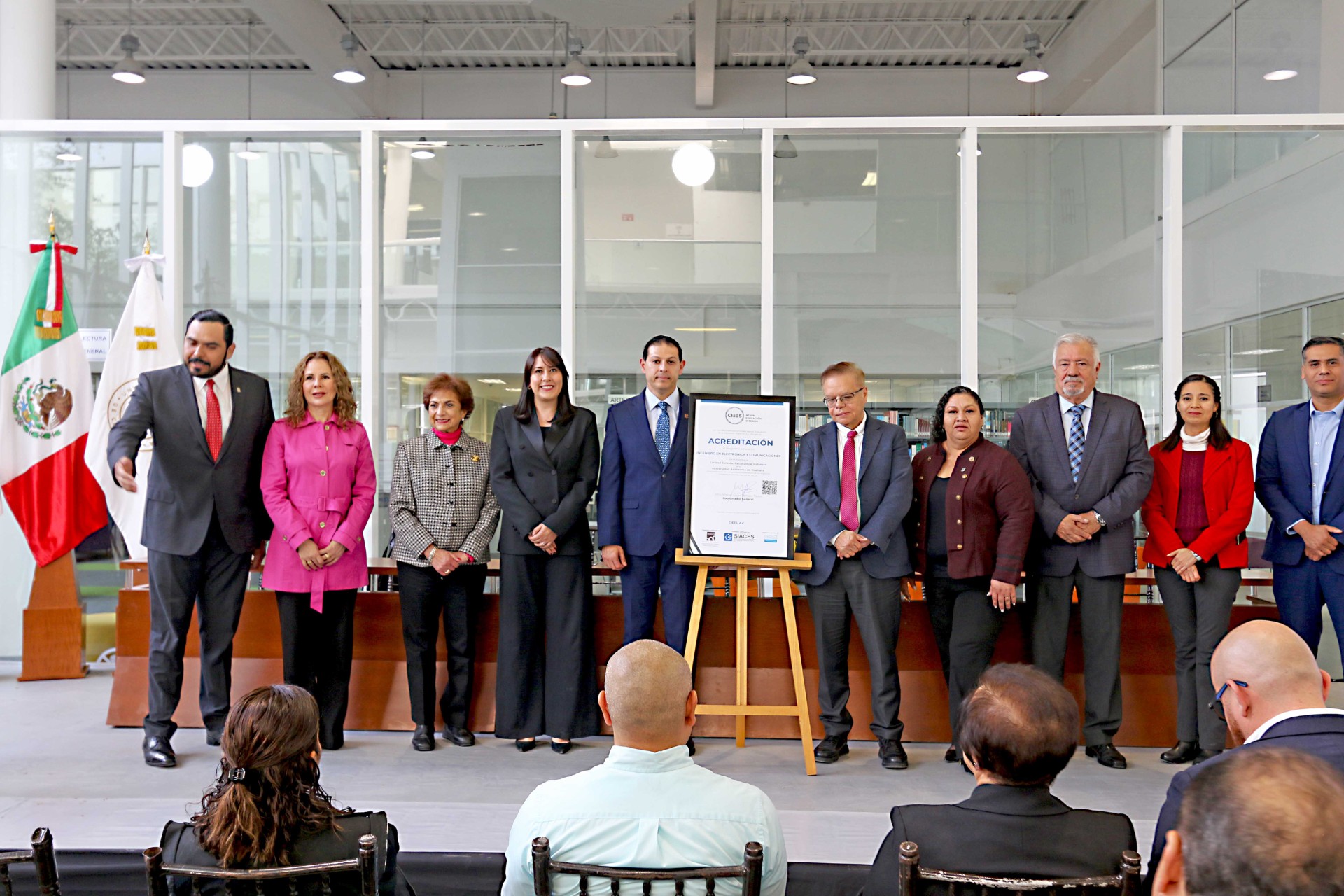 Las acreditaciones fueron recibidas por la directora de la Facultad de Sistemas, María del Carmen Coronando Rivera, el director de la Facultad de Ingeniería, Juan Carlos Ortiz Cuéllar, el director de la Facultad de Mercadotecnia, Iván Garnica Espinoza y la directora de la Facultad de Artes Plásticas, Raquel Torres Gutiérrez, junto con los comités de acreditaciones. (El Heraldo de Saltillo)