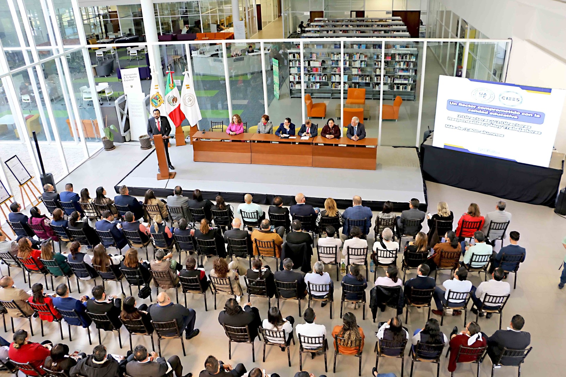 Además, la coordinadora de Unidad Sureste, Eva Kerena Hernández Martínez, la coordinadora de Unidad Laguna, Sandra López Chavarría, el coordinador de Unidad Norte, Luis Carlos Talamantes Arredondo, funcionariado universitario, los directores de los planteles, coordinadores de los programas y el equipo de trabajo de acreditaciones.