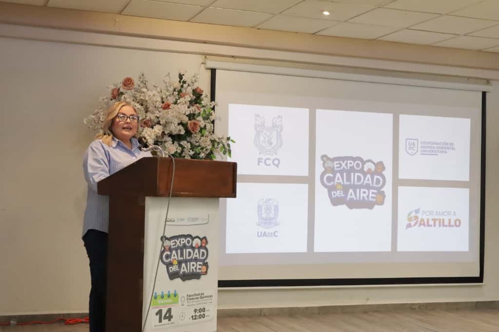 A su vez, en representación de Octavio Pimentel Martínez, rector de la UA de C, Verónica Villarreal Sánchez, coordinadora de la Agenda Ambiental Universitaria, expresó que la contaminación atmosférica es uno de los retos más urgentes en estos tiempos.