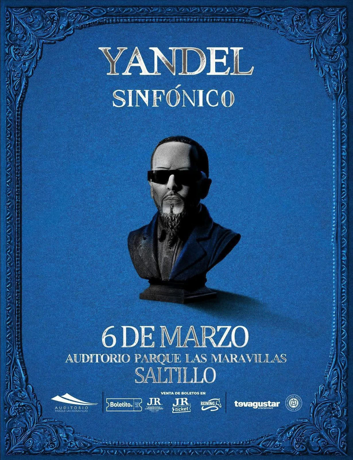 A través de redes sociales, la boletera Boletito anunció que el cantante puertorriqueño de reggaetón Yandel llegará próximamente a Saltillo como parte de su gira “Sinfónico”, un concierto con un formato más íntimo, en el que el reggaetón y la música clásica se fusionan como nunca antes visto, y a continuación te contamos todos los detalles.