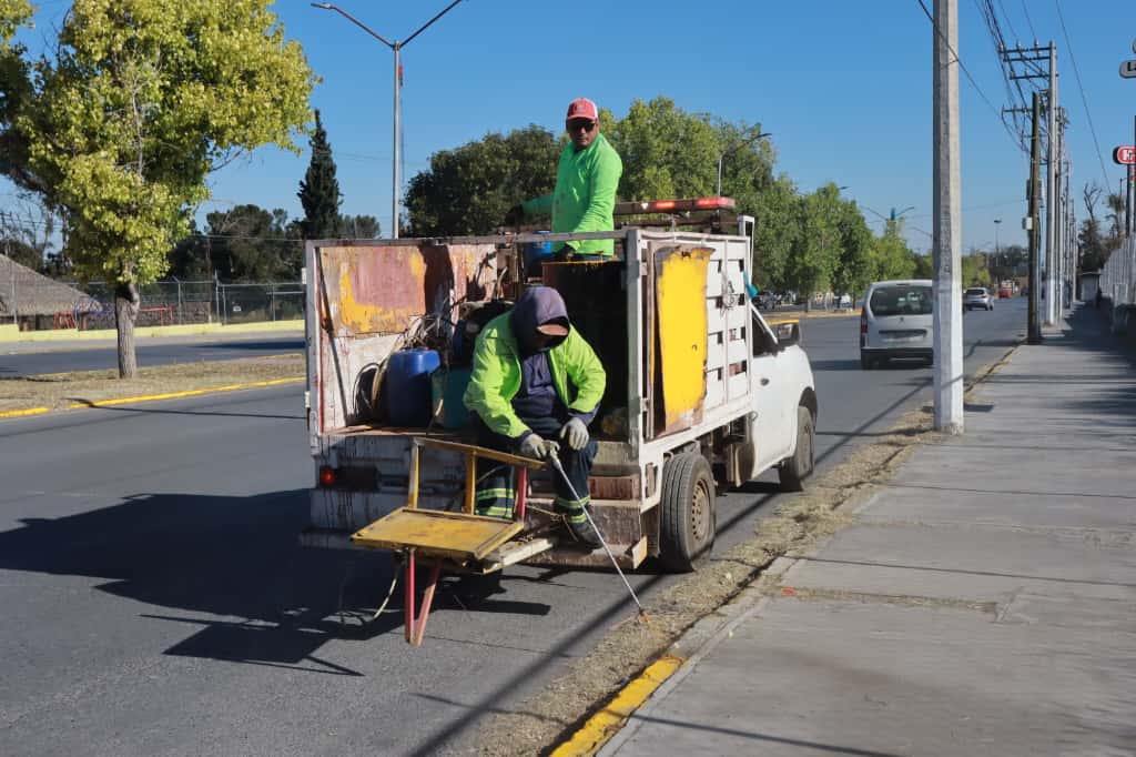 Este martes, por instrucción del alcalde Javier Díaz, brigadas municipales atendieron el camellón central de la Calzada Antonio Narro, en el tramo entre el periférico Luis Echeverría Álvarez y el bulevar Antonio Cárdenas.