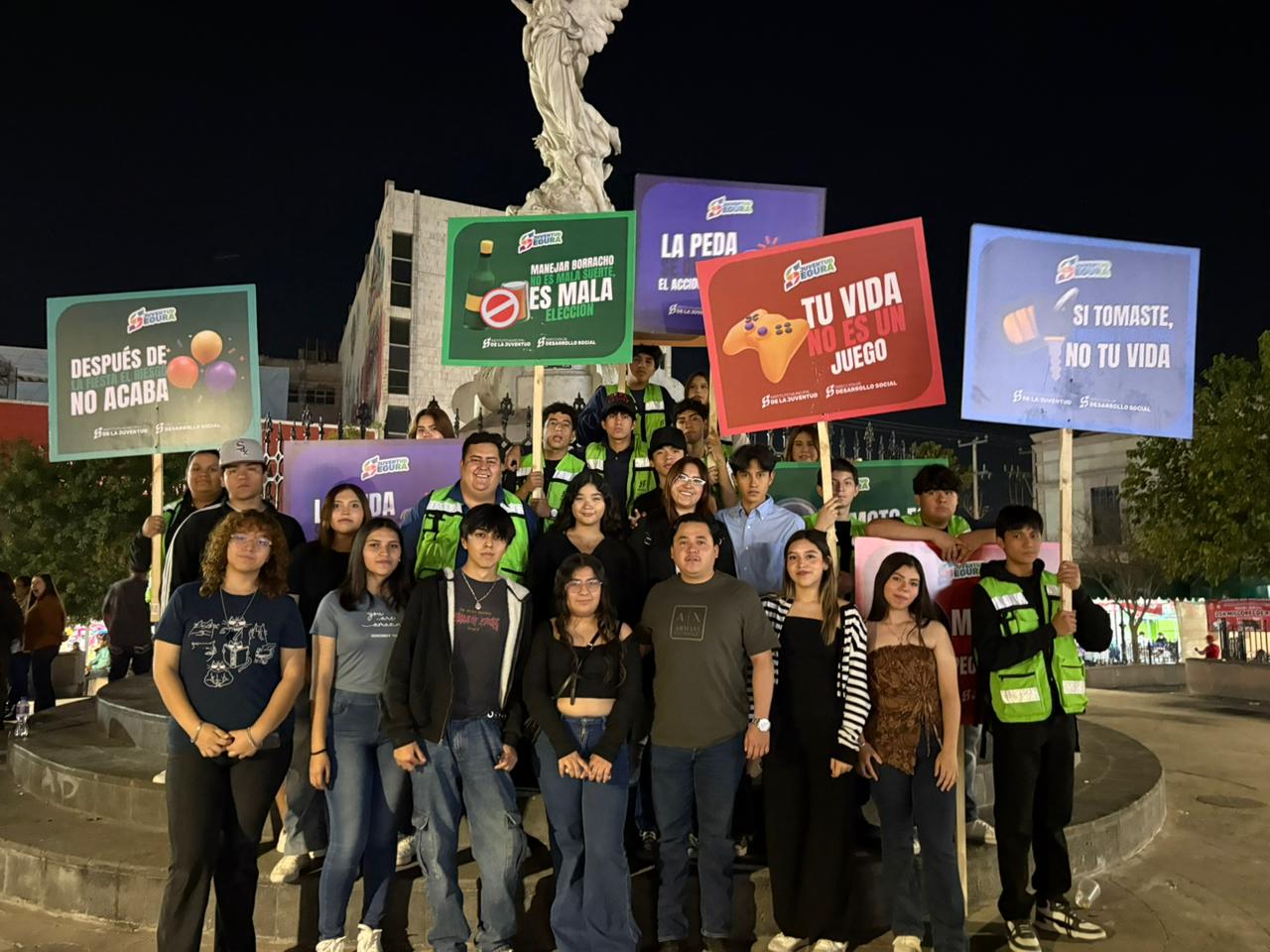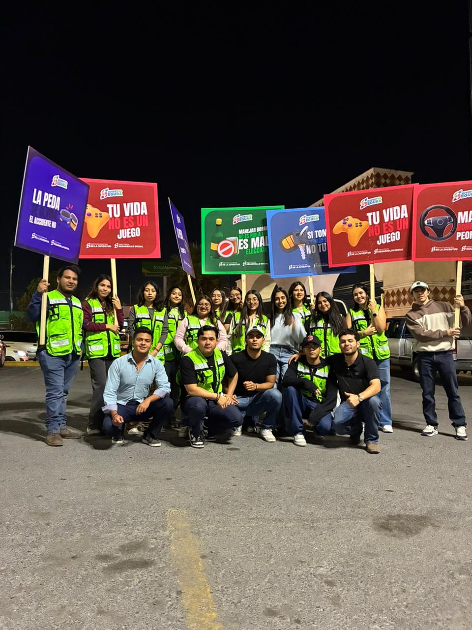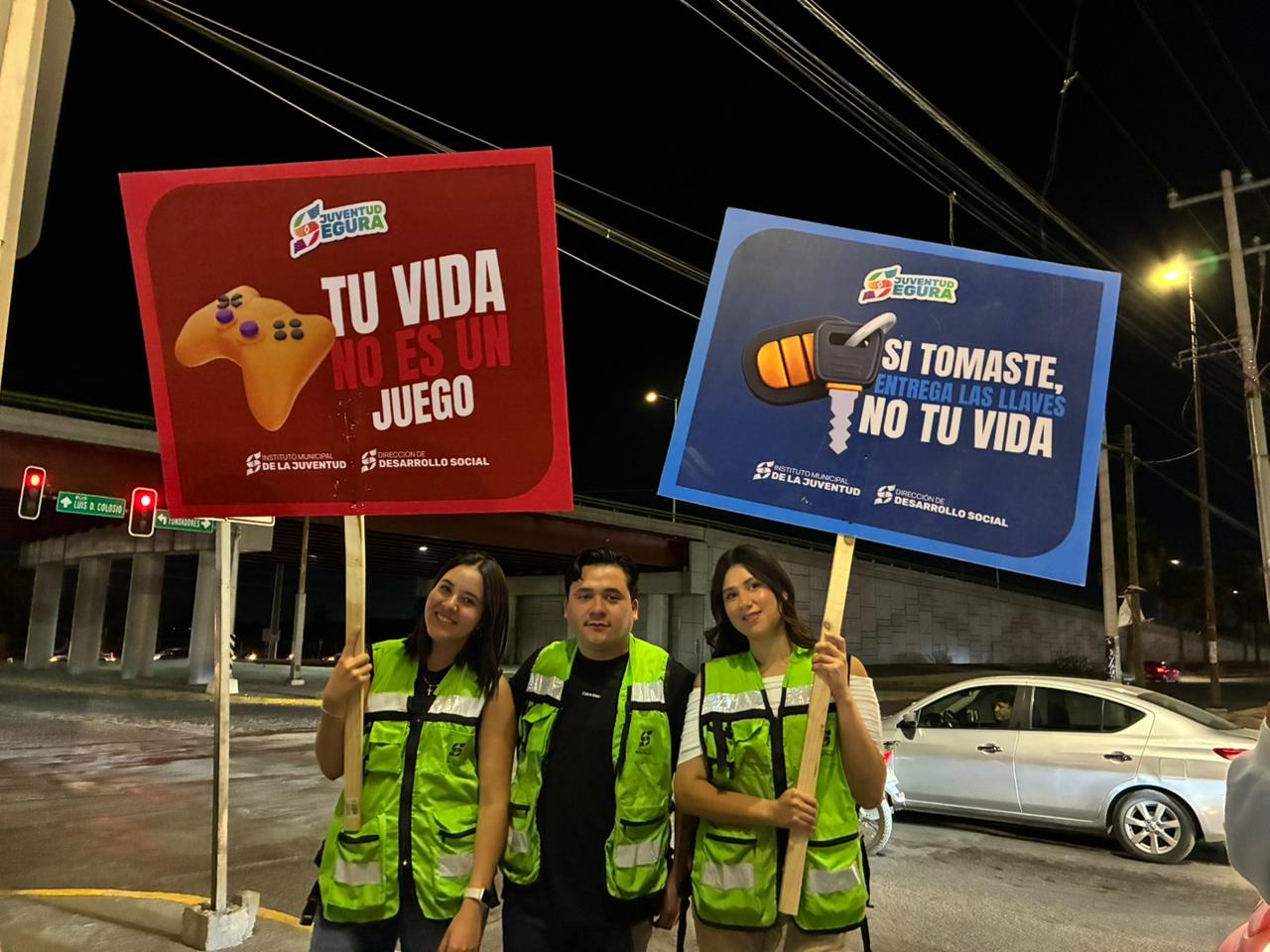 Las y los jóvenes que participaron en los cruceros temáticos mostraron letreros gigantes con frases como “Manejar borracho es la peor decisión”, “Tu vida no es un juego”, “Si tomaste entrega las llaves, no tu vida”, “Después de la fiesta el riesgo no acaba” y “Manejar borracho no es mala suerte, es mala elección”, entre otras.