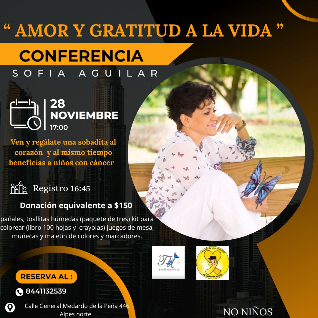El próximo 28 de noviembre, la tanatóloga Sofía Aguilar ofrecerá la conferencia «Amor y Gratitud a la Vida» en Saltillo, para ofrecer a sus escuchas alternativas y herramientas emocionales para sobrellevar el fallecimiento de seres queridos.