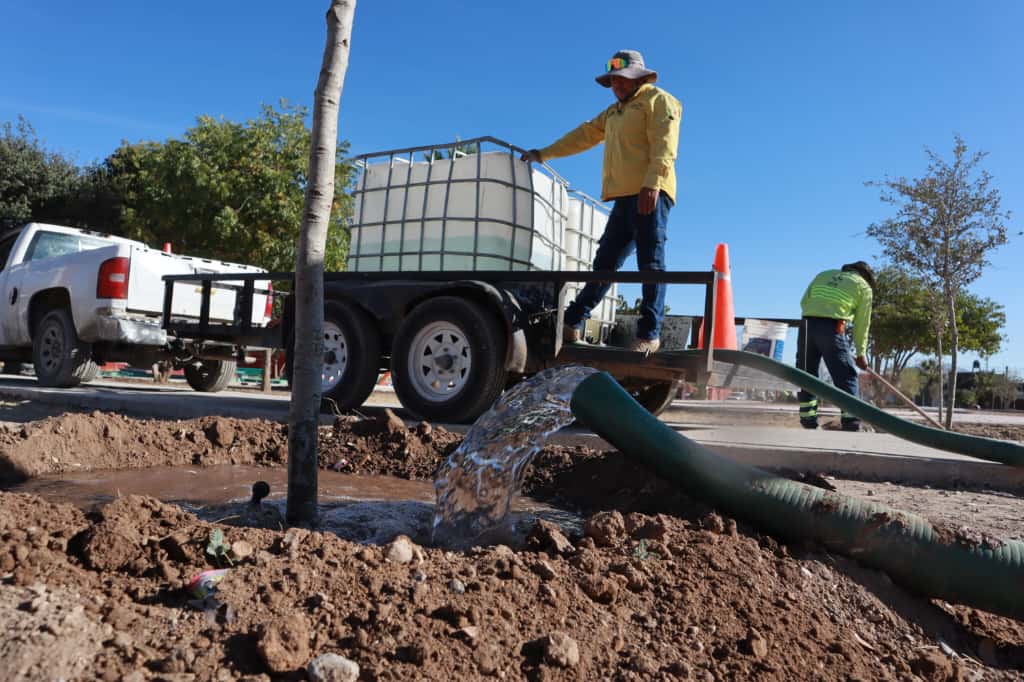 Para impulsar el cuidado del entorno y garantizar la sostenibilidad en el uso del agua, el gobierno a cargo de Javier Díaz González continúa sus acciones de riego con agua tratada en las áreas verdes de plazas públicas y espacios recreativos de la ciudad.