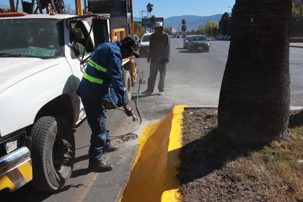 Para incrementar la seguridad de peatones y automovilistas, brigadas de la Dirección de Infraestructura y Obra Pública pintaron el cordón cuneta de color amarillo del paso peatonal existente en el cruce del bulevar Francisco Coss y la calle Álvaro Obregón.