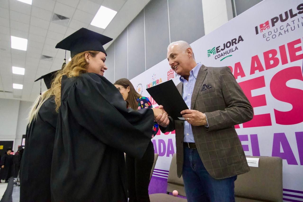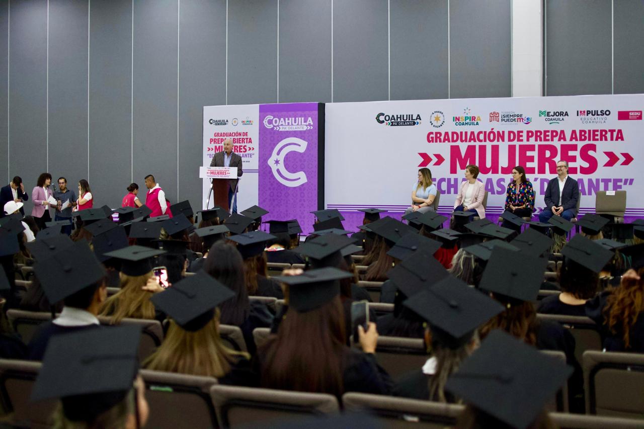 “Todas comparten algo en común, la fuerza de no rendirse, de creer que nunca es tarde para cumplir un sueño. Hoy celebramos a quienes concluyen la preparatoria, y también reconocemos a quienes dan un paso más y se suman a las más de 4 mil 300 mujeres que ya están cursando una carrera universitaria en los 38 municipios de Coahuila. Con el respaldo de Manolo creamos este programa que nació para abrir puertas para que ninguna mujer se quede sin la oportunidad de estudiar, de crecer y de transformar su vida”.