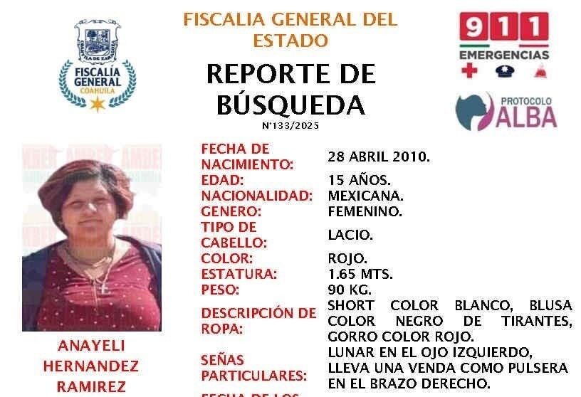 Continúa la búsqueda de Anayeli, adolescente desaparecida en Ramos Arizpe