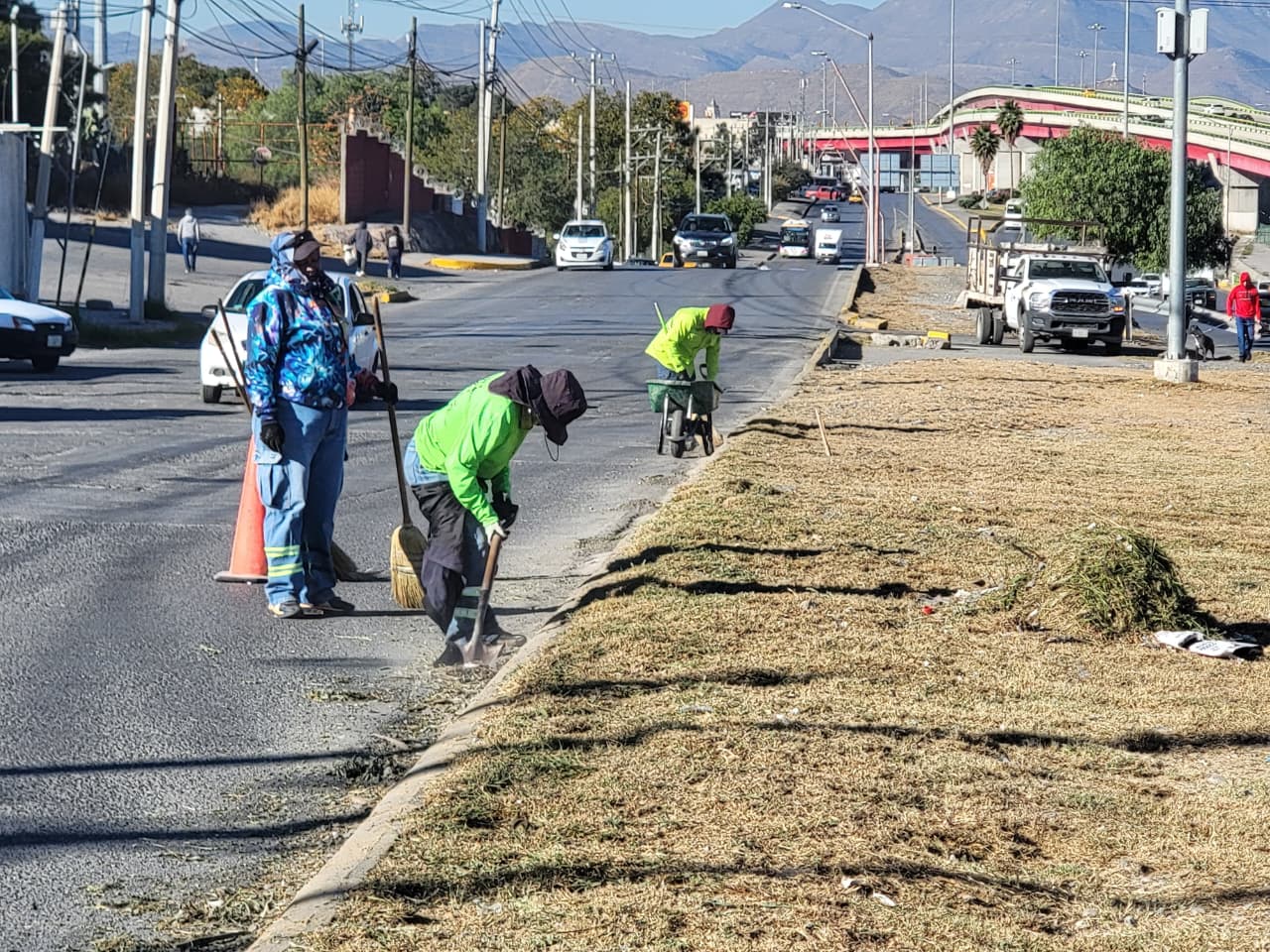 Sumado a esto, el Ayuntamiento de Saltillo reforzó sus acciones de limpieza profunda en el bulevar Fundadores, con trabajos de barrido, deshierbe y retiro de basura acumulada en el tramo que comprende entre el Distribuidor Vial El Sarape al bulevar Luis Donaldo Colosio.