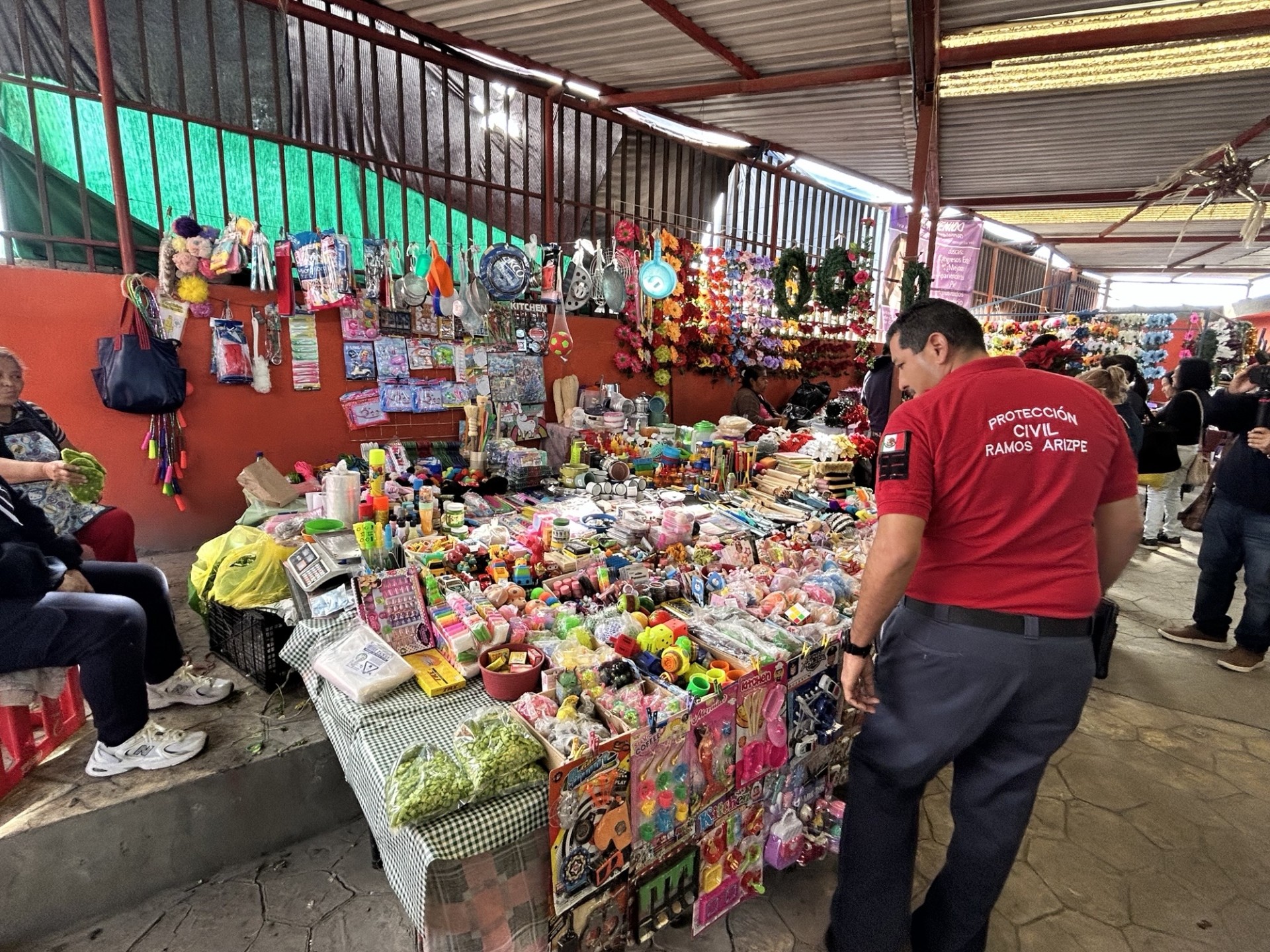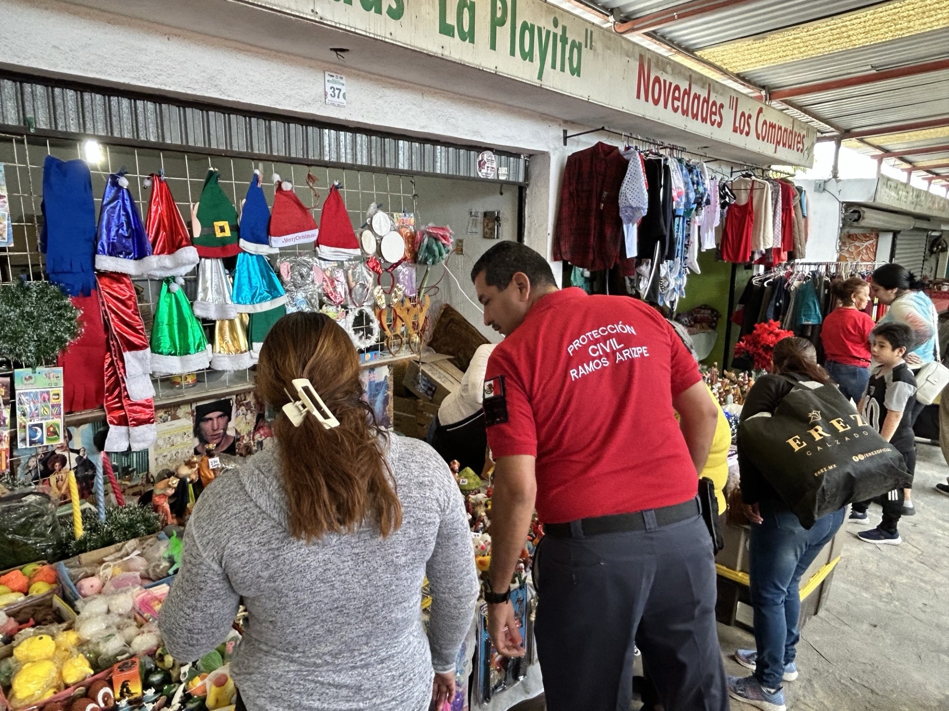 Como parte del operativo más reciente, Protección Civil revisó el mercado “Mario Gómez del Bosque” en la colonia San Antonio, el cual cuenta con alrededor de 60 locales dedicados a la venta de comida, ropa y artículos diversos. Durante la inspección, informó Sánchez Aguirre, no se localizaron productos de pirotecnia.