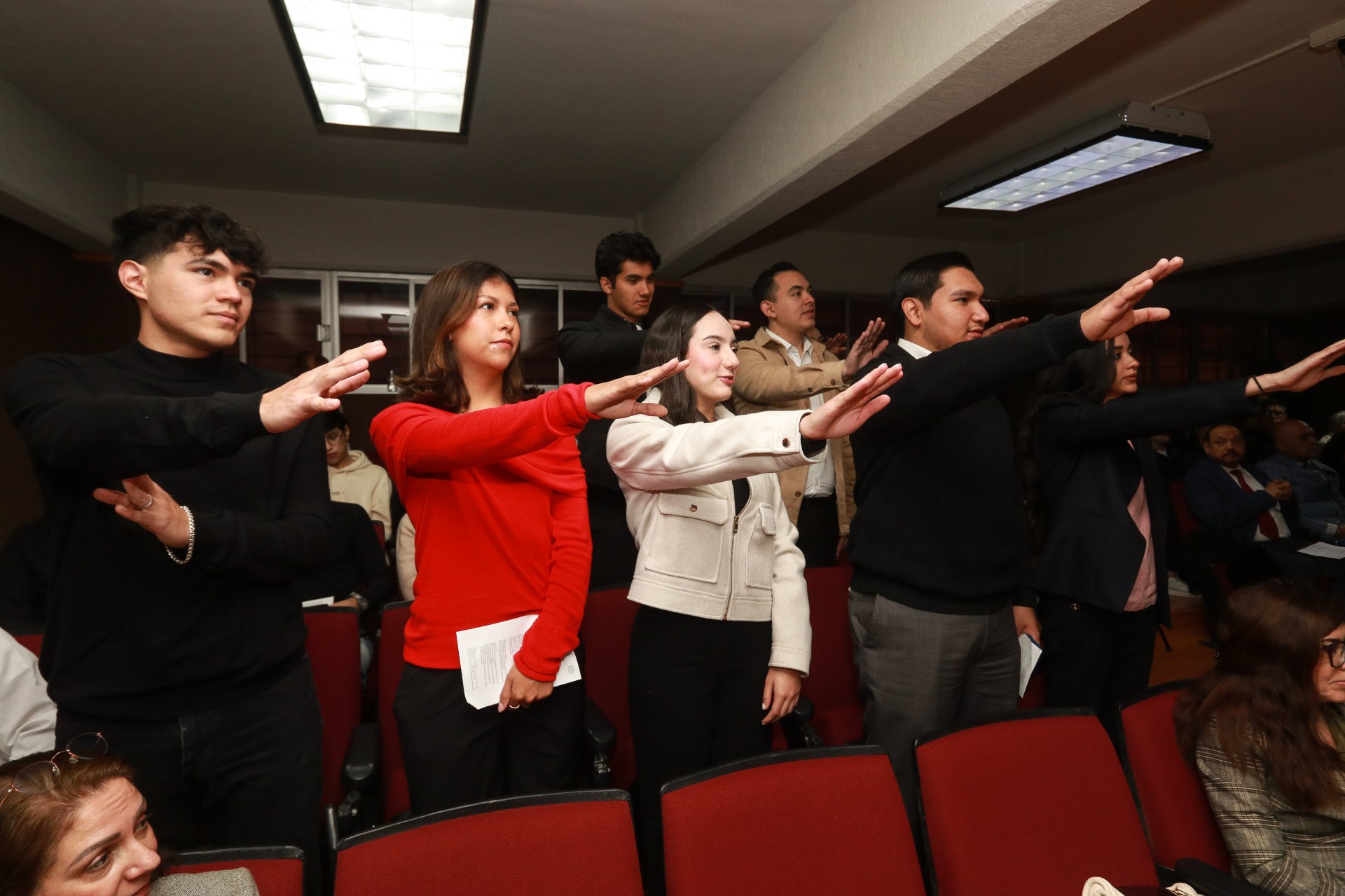 En el Auditorio “Dr. Gerardo Valdés Villarreal”, asistió el director de la Facultad, Jesús Ángel Padilla Gámez, el secretario académico, Mario Alberto Valdés Dávila, los nuevos miembros del Consejo Directivo, de la Sociedad de Alumnos y del Comité, así como, alumnos y docentes.