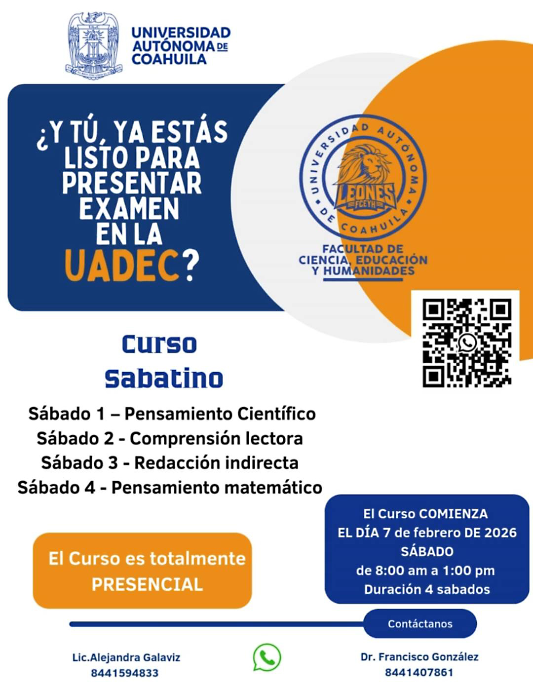 Ofrece Facultad de Ciencia, Educación y Humanidades de la UA de C curso para aspirantes de bachillerato y licenciatura