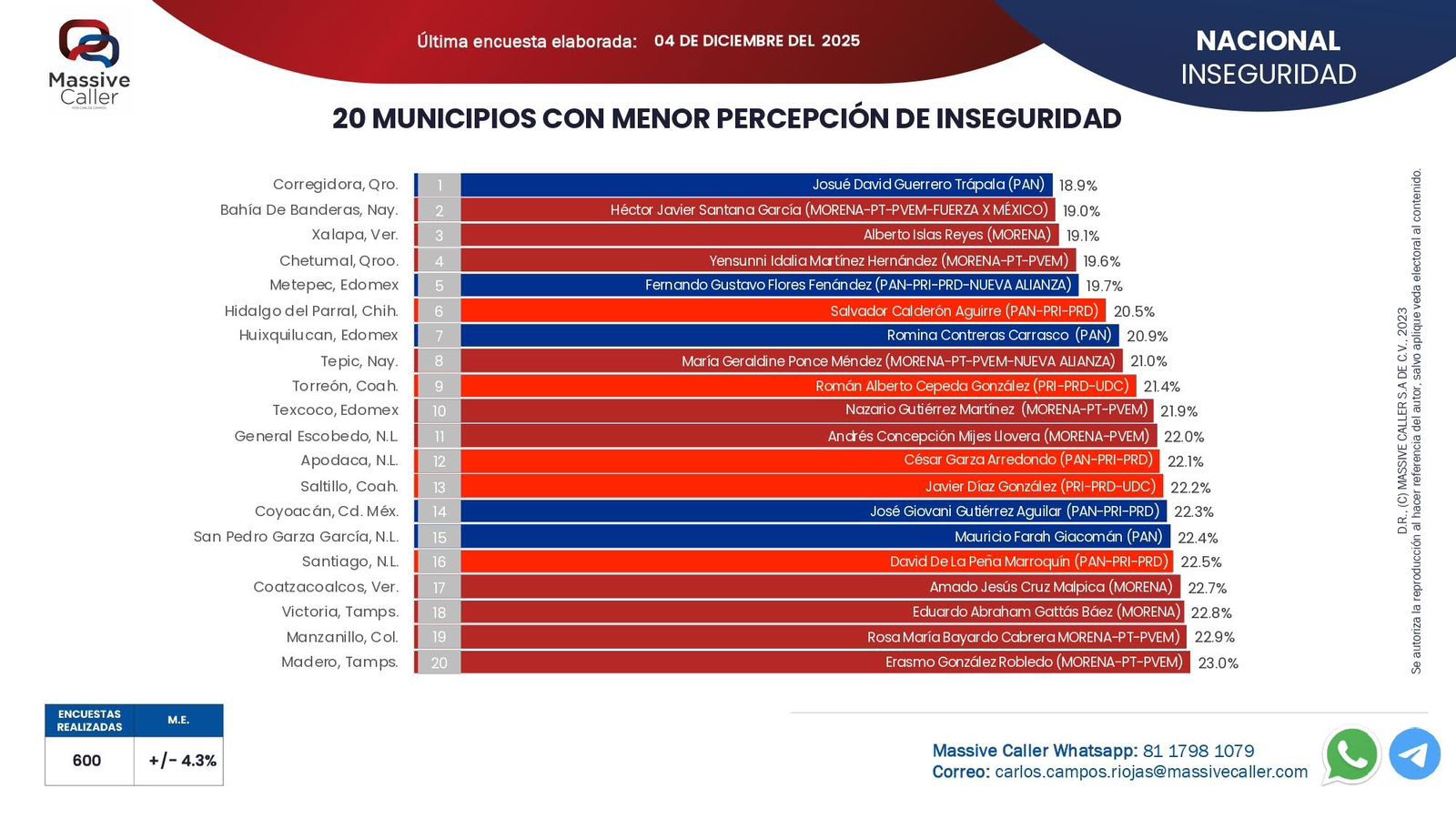 Torreón se encuentra dentro de los 10 primeros lugares con menor percepción de inseguridad en el país