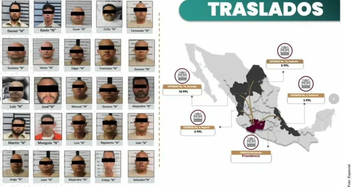 Omar García Harfuch, titular de la Secretaría de Seguridad y Protección Ciudadana (SSPC), precisó que 10 personas privadas de la libertad fueron llevados al Cefereso 14, en Durango; 5 más al Cefereso 4, en Nayarit; otras 5 al Cefereso 5, en Veracruz, y 5 más al Cefereso 18, en Coahuila.