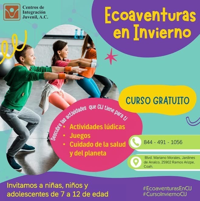 El Centro de Integración Juvenil (CIJ) en Ramos Arizpe lanzó una invitación a madres y padres de familia para que inscriban a sus hijas e hijos al curso gratuito “Ecoaventuras en Invierno”, una actividad diseñada para que niñas, niños y adolescentes de 7 a 12 años disfruten de dos mañanas llenas de aprendizaje, convivencia y diversión en un entorno seguro.
