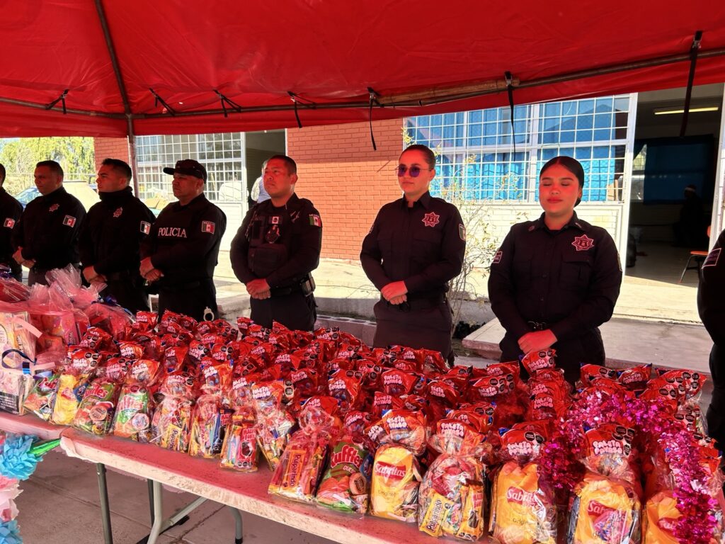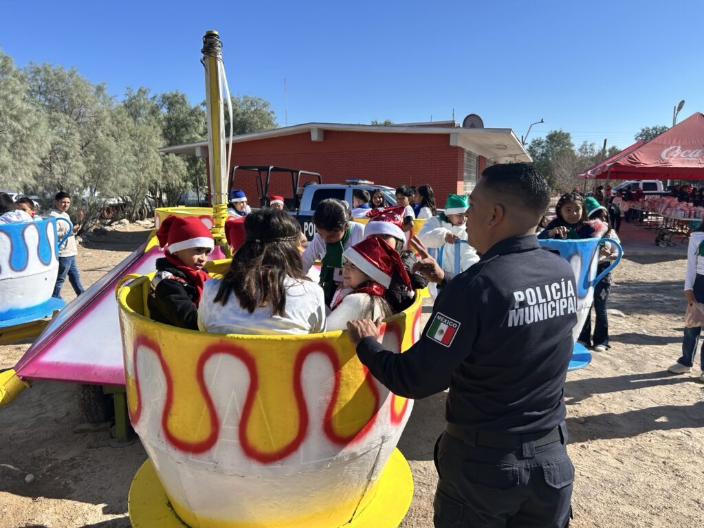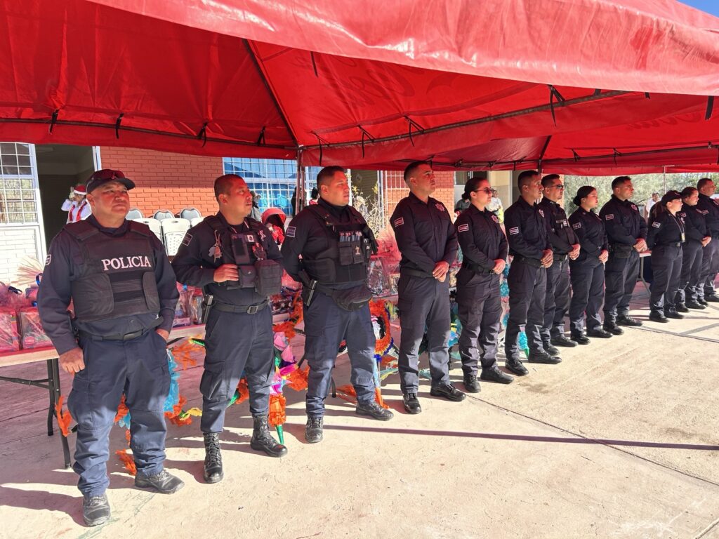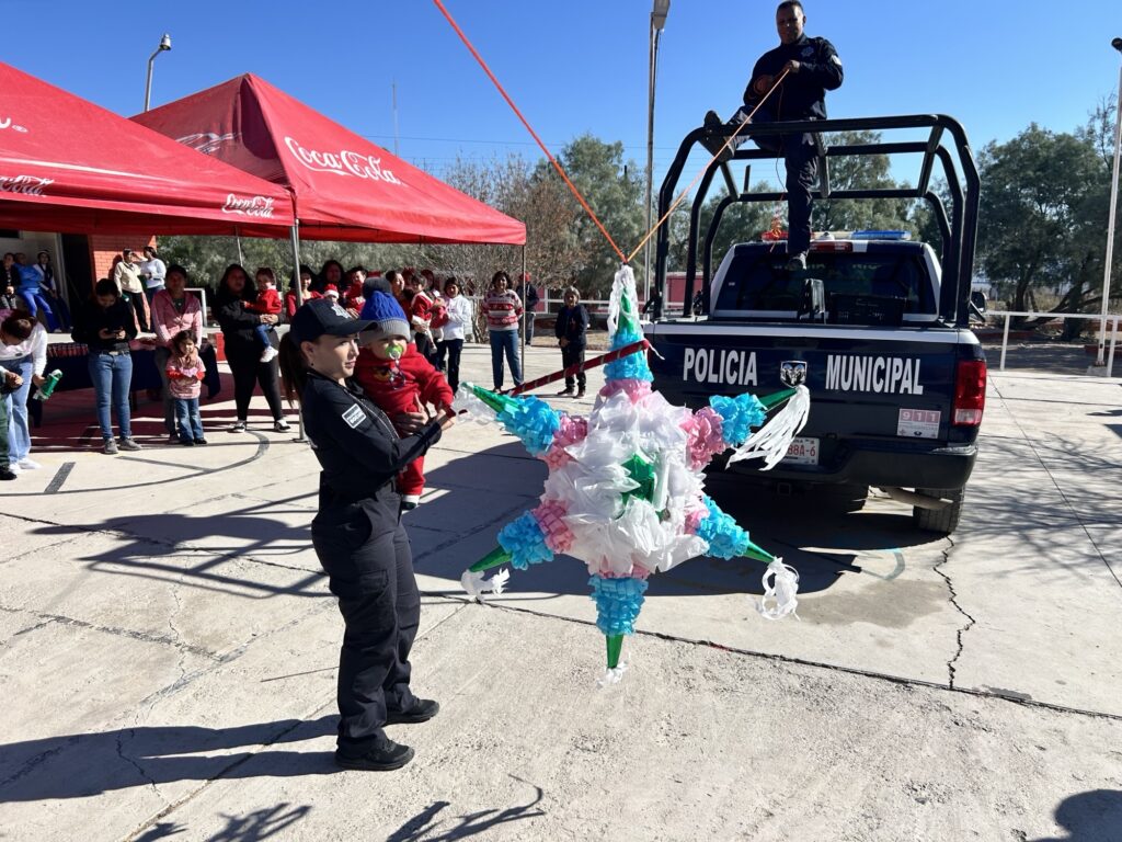Elementos de la Policía Preventiva Municipal de Ramos Arizpe acudieron al ejido Hipólito para celebrar una posada navideña en la escuela primaria “Amado Nervo” así como en el Jardín de Niños “Celso Flores Zamora” y Educación Inicial “Alegría de los Niños”, actividad que benefició a las niñas y niños del plantel, así como a padres de familia y docentes que se sumaron a esta convivencia.
