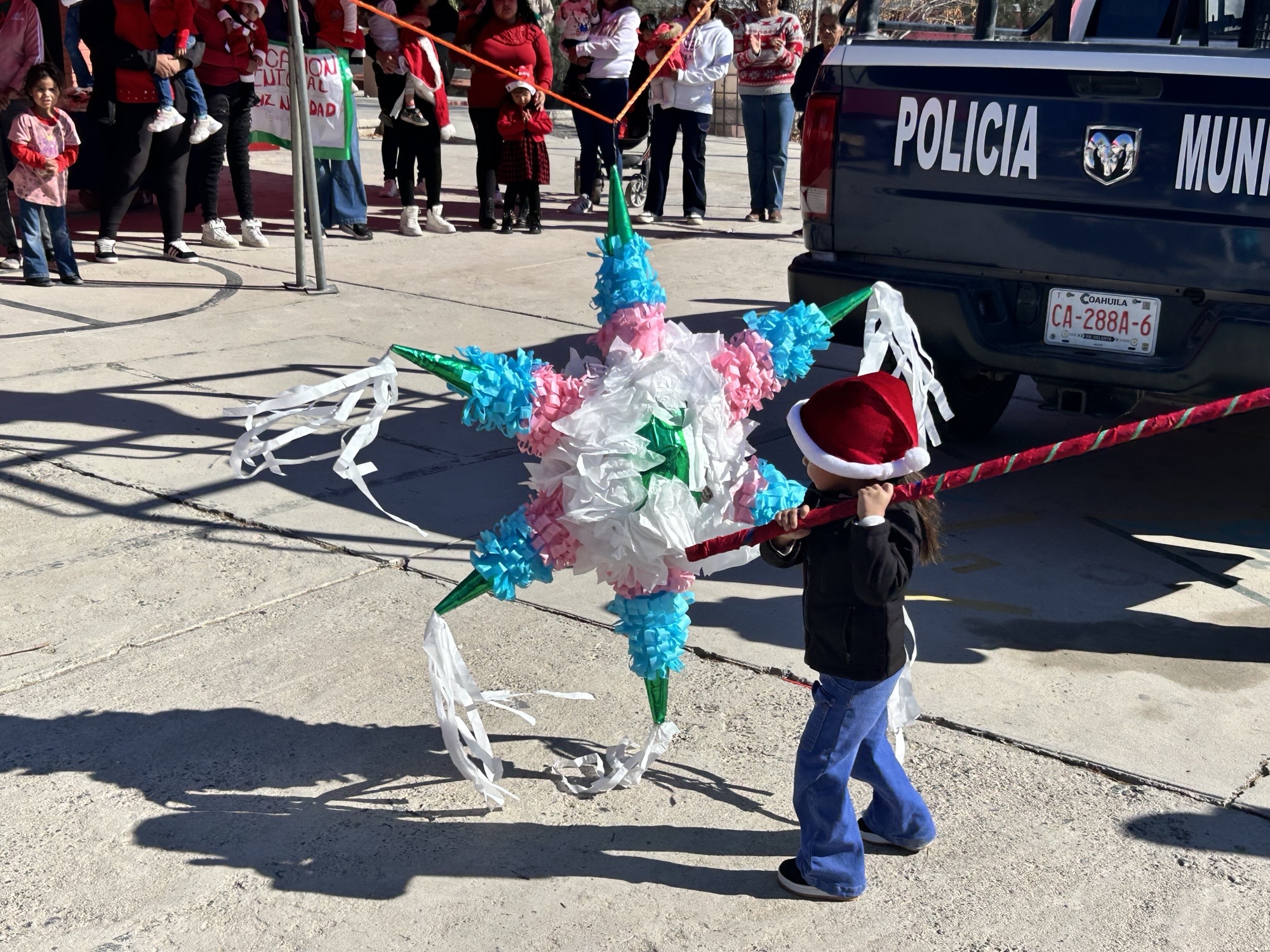 Policía Municipal de Ramos Arizpe lleva alegría navideña a niñas y niños del ejido Hipólito