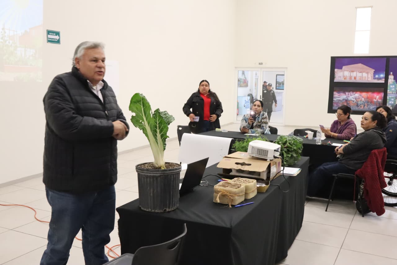Esta capacitación, realizada en las instalaciones de la Unidad Administrativa de la Presidencia Municipal, fue impartida por Lorenzo Alejandro López Barbosa, Norma Sánchez García y Selene Yáñez Martínez, del Centro de Permacultura y del Departamento de Sociología de la Universidad Autónoma Agraria Antonio Narro (UAAAN).