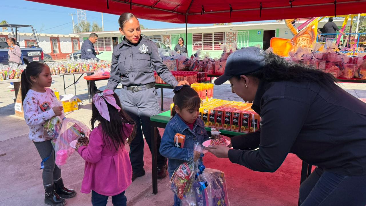 Policía Municipal de Ramos Arizpe lleva posada navideña a la niñez del ejido Paredón